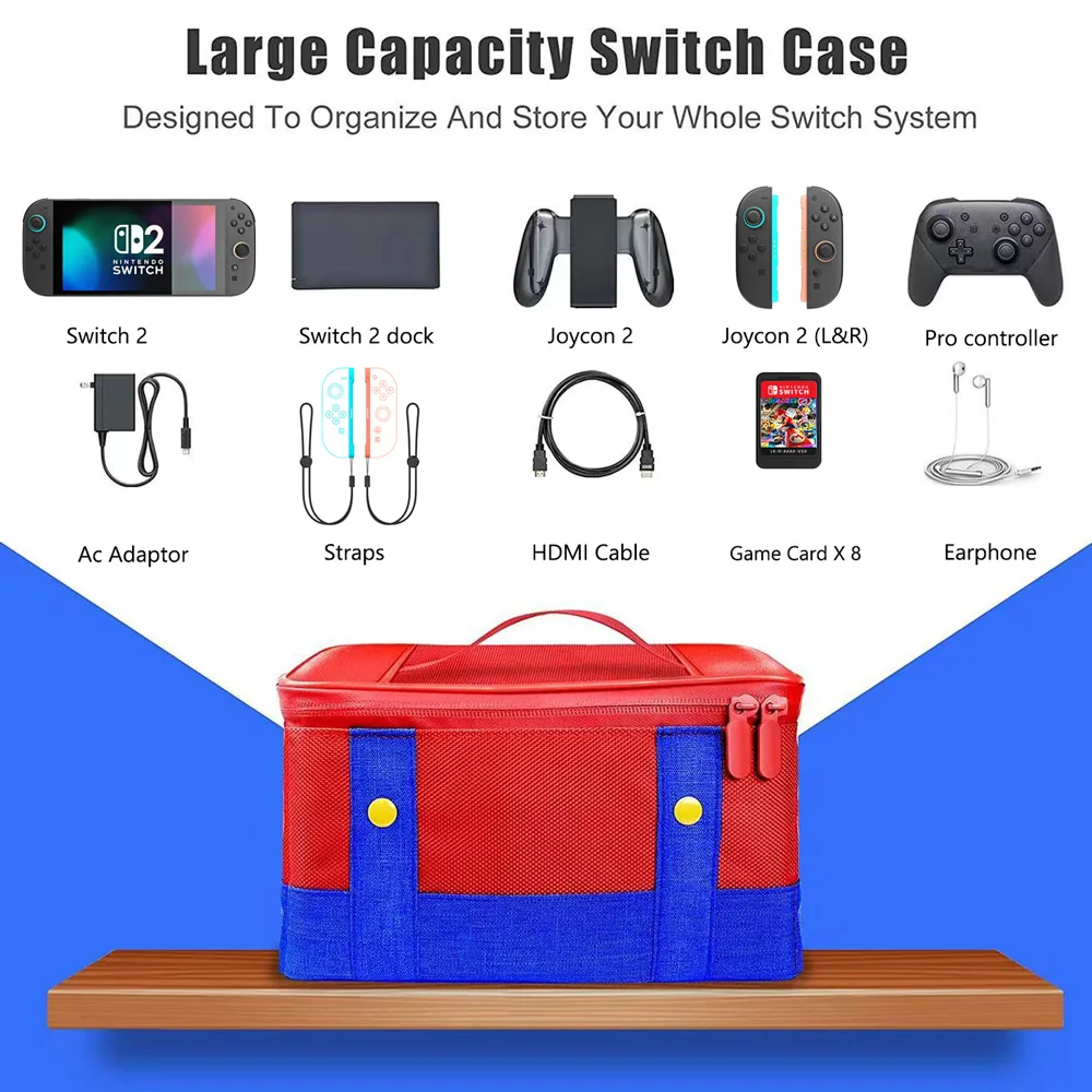 Large Storage Case for 2025 Nintendo Switch 2 Mario Accessories Hard Carrying Hand Bag for Switch 2 Waterproof EVA Shell Cover