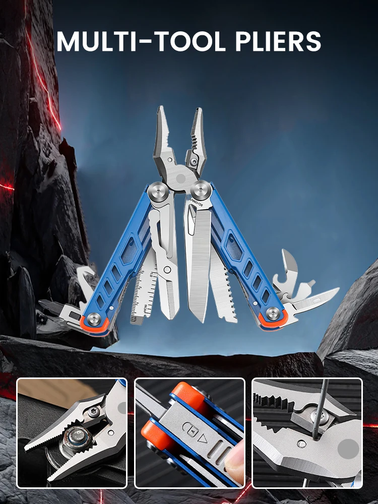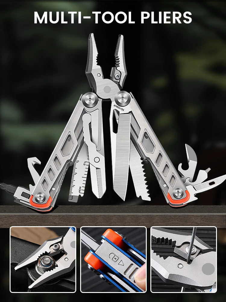 VERSATILE DESIGN: 14-in-1 multitool featuring stainless steel construction with folding pliers, nail puller, and multiple built-in tools for outdoor activities
