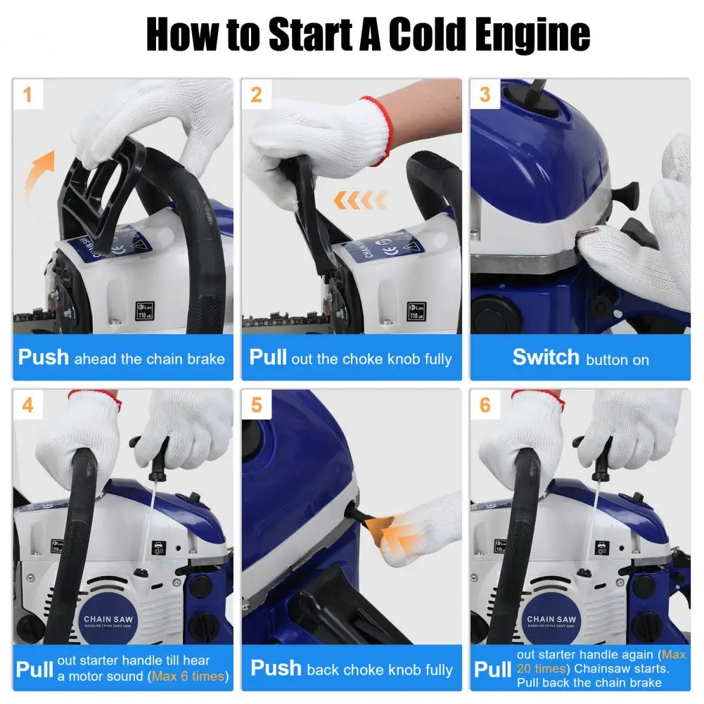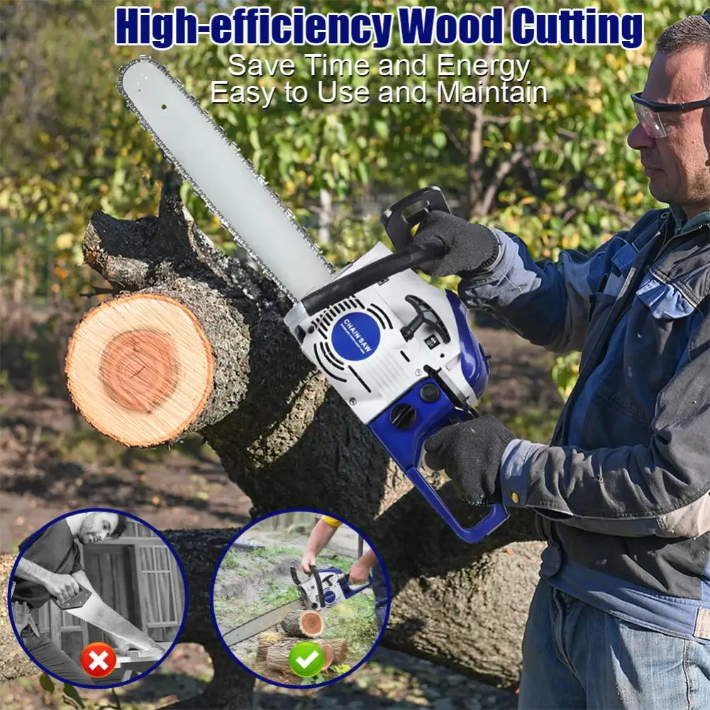 Reliable & Professional: Professional gas power chain saw is equipped with high temperature quenching chain, fast cutting, more durable and high wear resistance, not easy to drop chain, having a longer using life.
