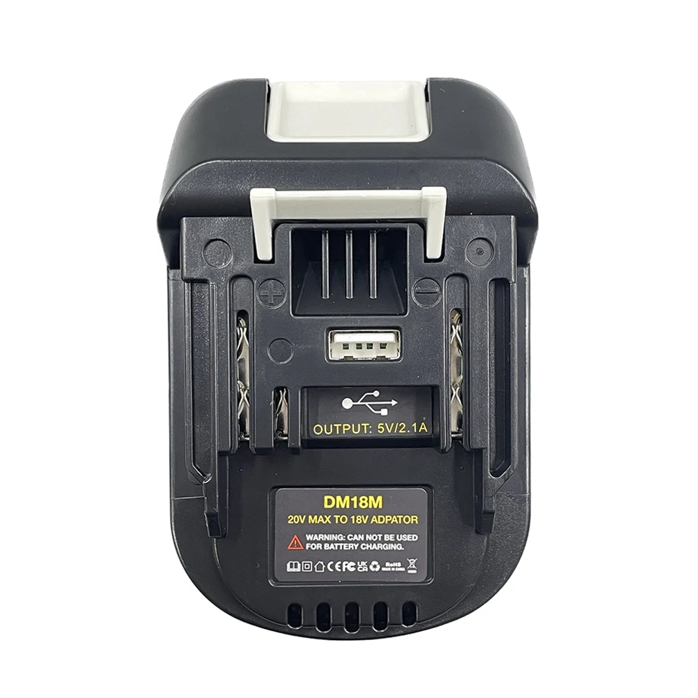【Converter Advantages】: This Cordless Power Tools Adapter made of ABS material, strong and durable. Size about 4.32x2.79x1.73inch. Professional compact design and easy installation. Built-in USB charge port(output: 5V, 2.1A max) design for charging the low-power electronic products, such as smart phone, tablet, smartwatch.