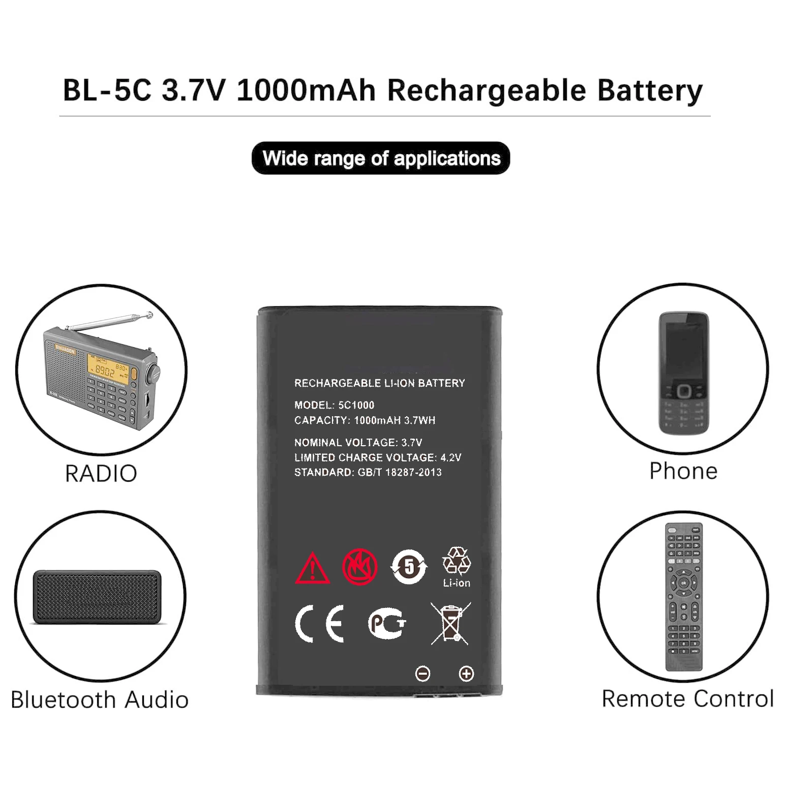This product is suitable for radio 1000 R108 2600 2610 2626 2700C 2710 2710c 2730c 3100 3105 3109C, MP3 player remote control GPS、 Camera, Nokia 1000, 1010, 1100, 1108, Rete RT22 RT22S RT15 RT19 intercom, household appliances (with current protection)
