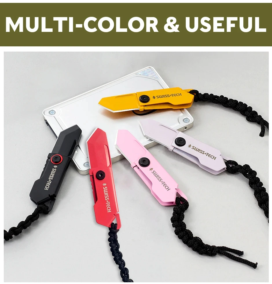 SWISS TECH Small Folding Knife Keychain Mini Toolbox Knives Gadgets Portable Rope Hanging Storage Lanyard
