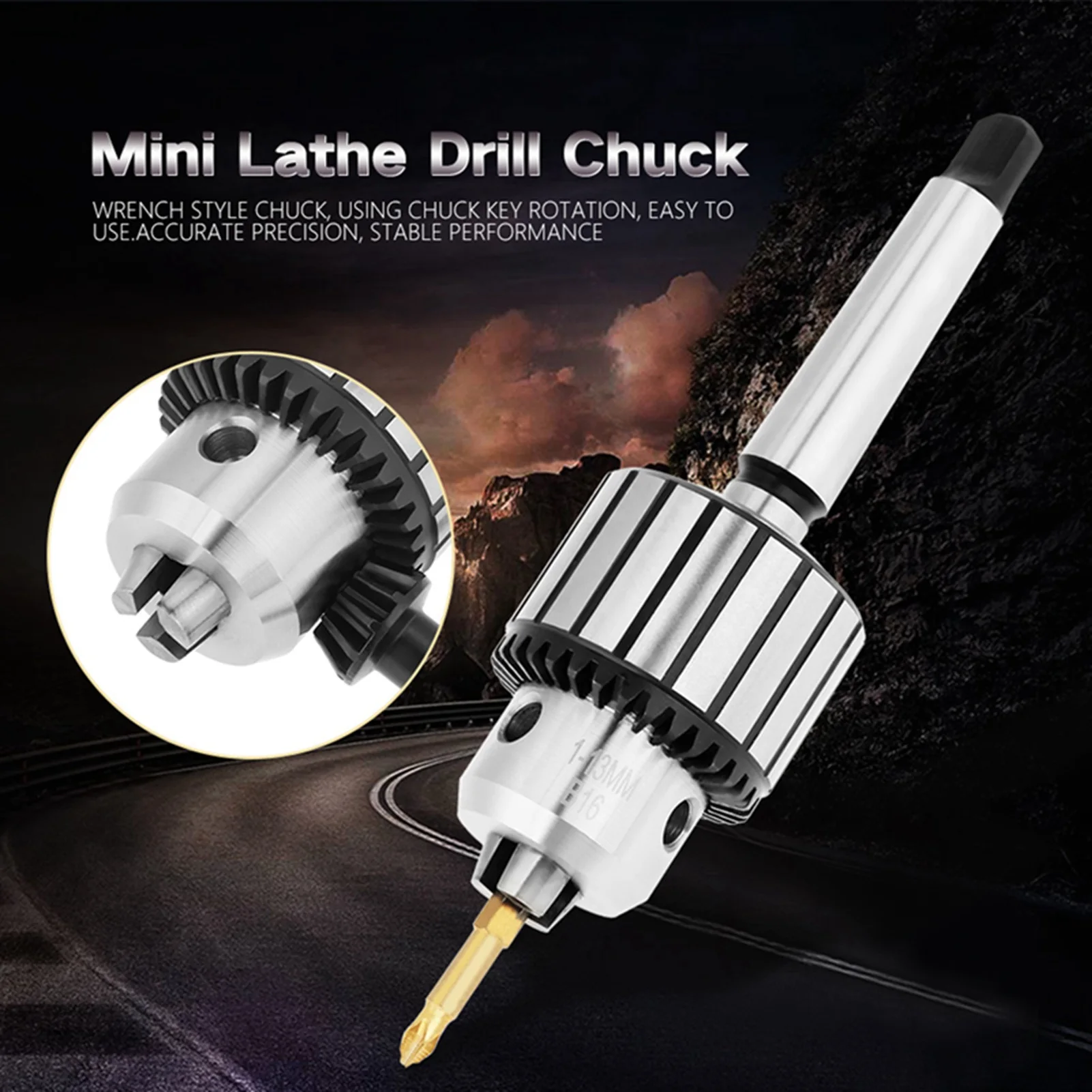 1-13mm Capacity Carbide Steel MT2-B16 Arbor Key Type Drill Chuck Mini Lathe Tool