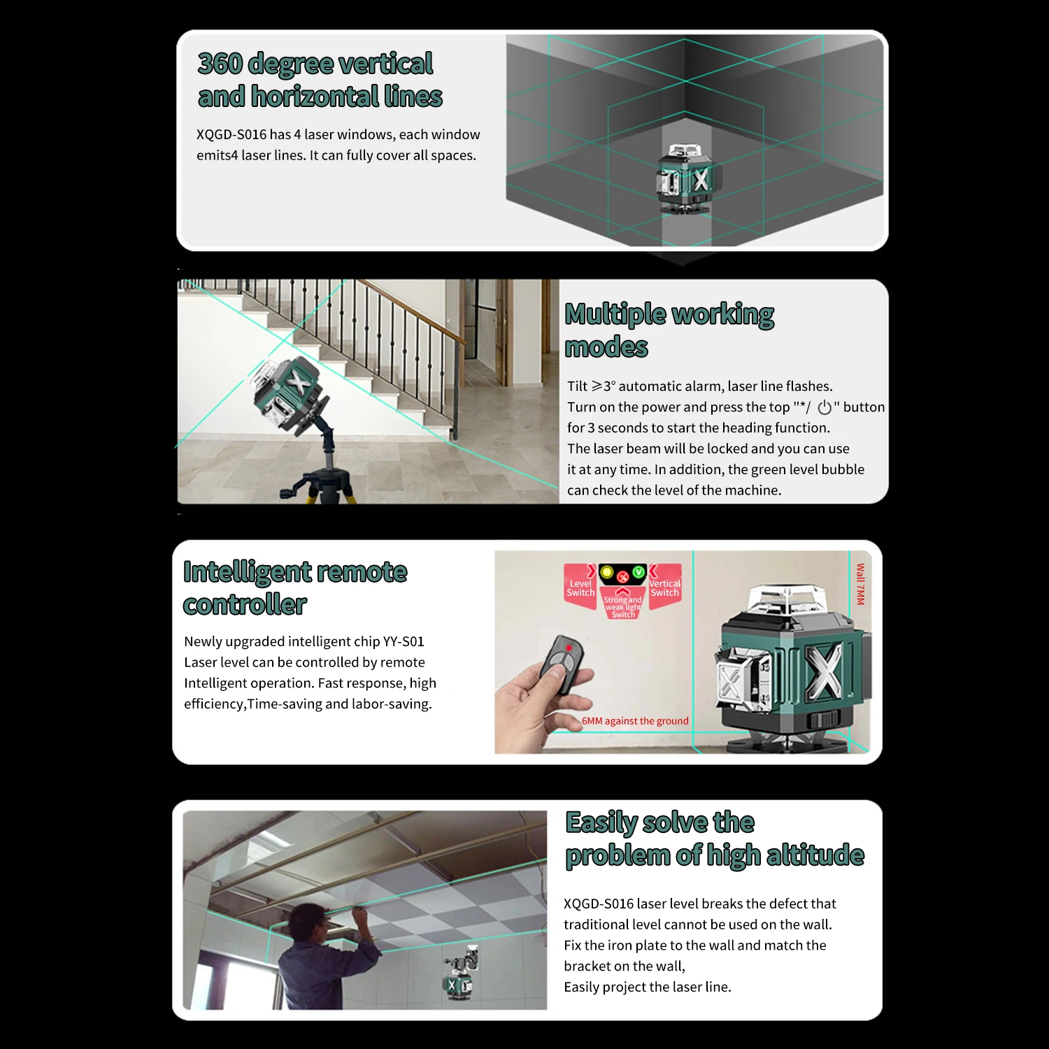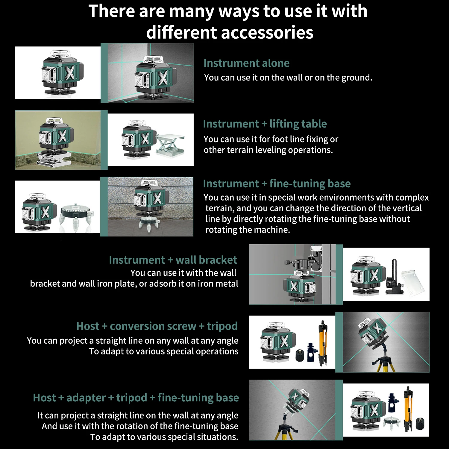 You can project laser lines at any angle and meet your alignment needs from different angles.