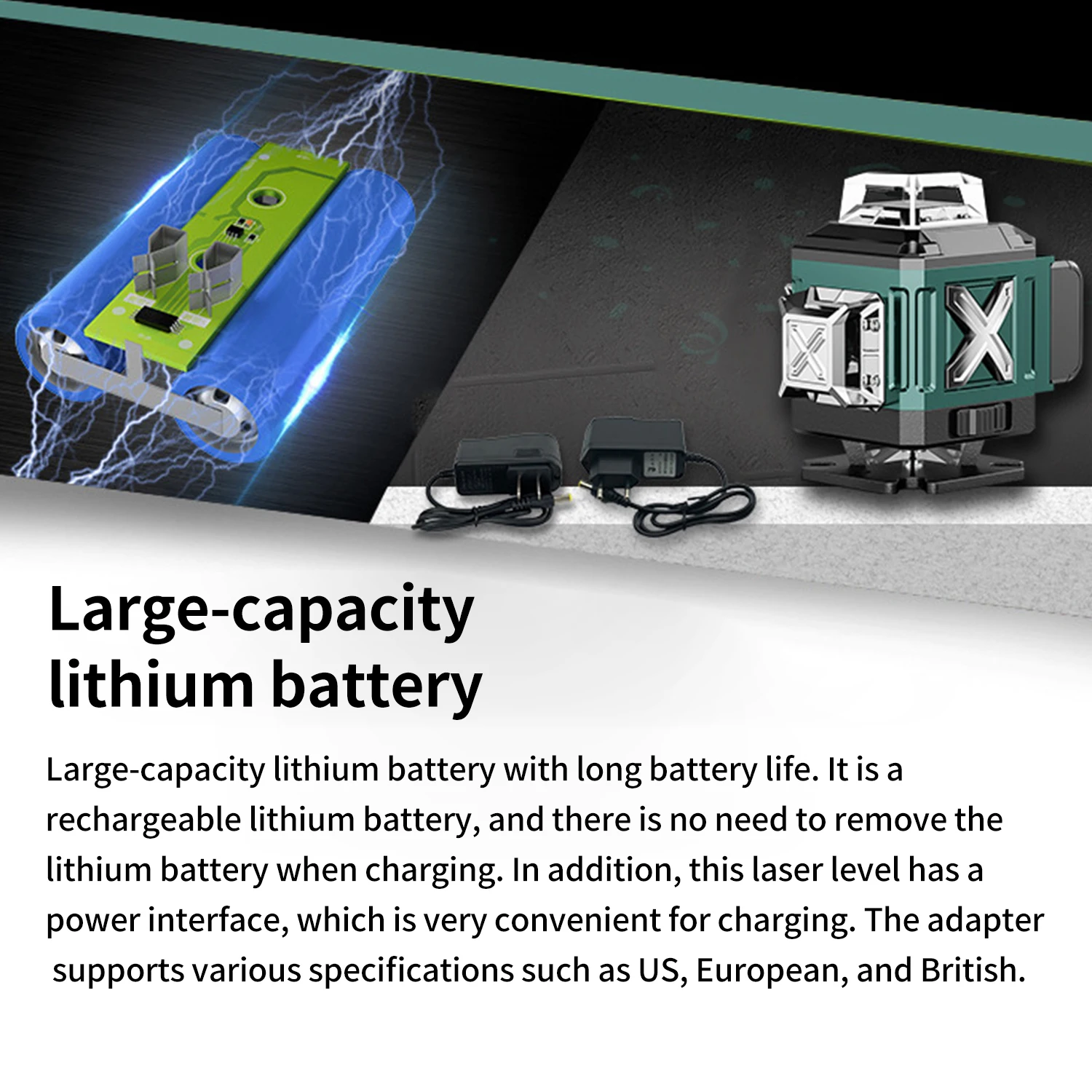 Cross Line Laser Green 16 Lines, 4x360 ° Laser Spirit Level, Self-leveling, Line Laser Construction 2 Batteries,Remote Control