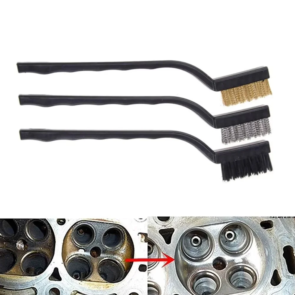 3Pcs Stainless Steel Copper Nylon Wire Brush Rust Scrub Remove Cleaning Tools Machinery Molds Parts Manual Cleaning&maintenance