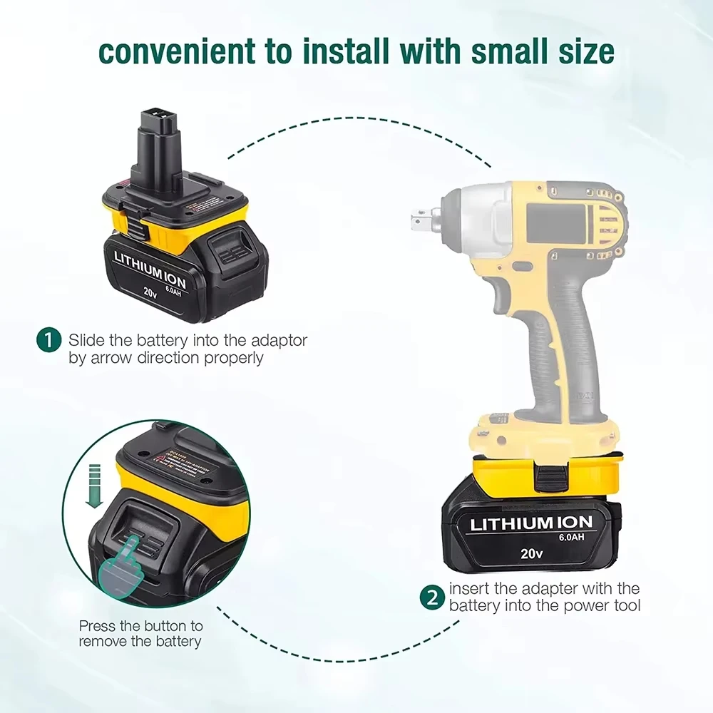 ⭐【 100% COMPATIBLITY 】-- Work with (for Dewalt) most 20V MAX Lithium-ion cordless power tools.Converts 20V MAX Lithium-ion battery DCB200 DCB201 DCB203 DCB204 DCB205 DCB206. Replace (for Dewalt) old 18V Ni-Cad or Ni-MH XRP batteries DC9096 DC9098 DE9039 DE9095 DE9096 DE9098 DW9095 DW9096 DW9098.
