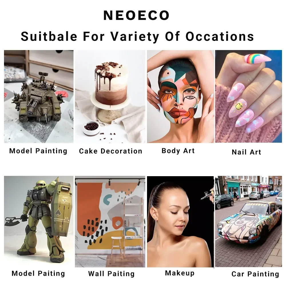 3.Portable & Multifunction:upgrade airbrush kit has a portable and compact size, easy to carry anywhere. This mini airbrush can be used for art painting,cake decoration, makeup, nail art,handicraft,model coloring,illustrations,temporary tattoos,etc.