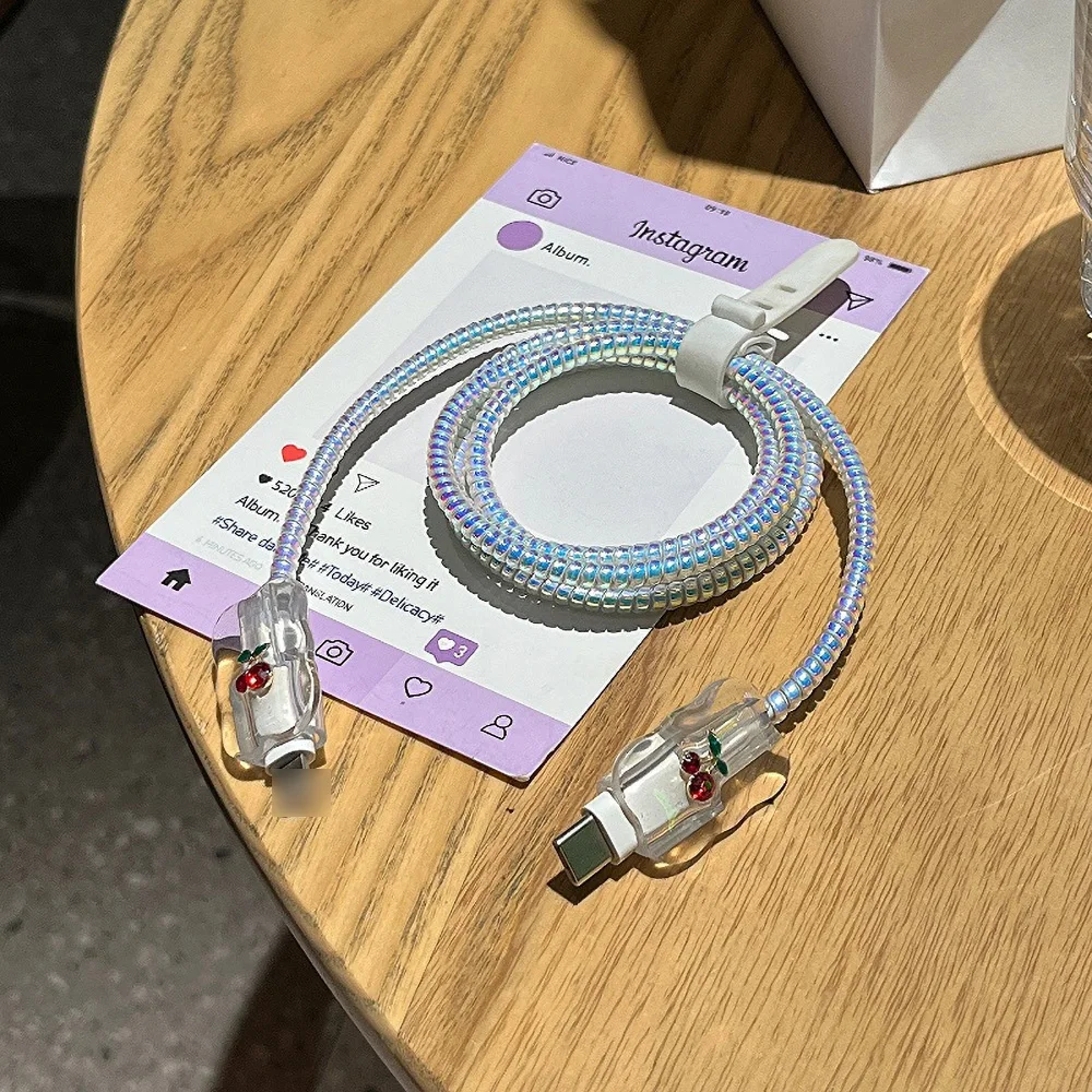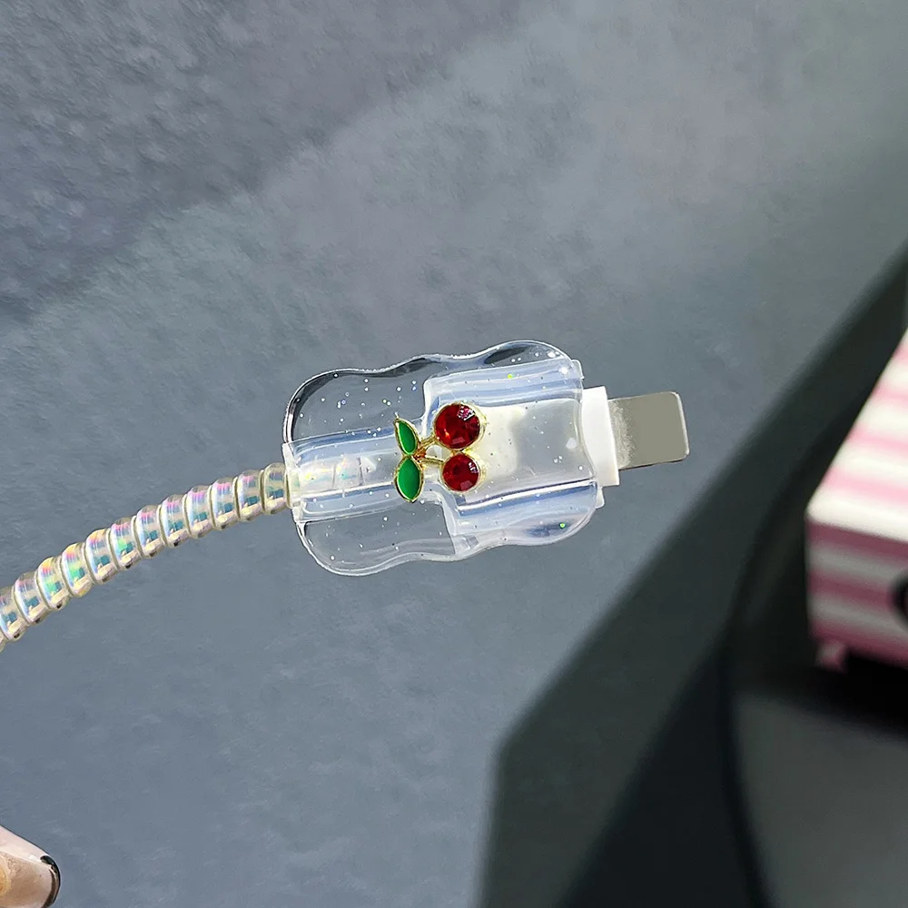 For iPhone 20W 18W US Charger Protection Cover Cute Cherry USB Cable Winder Protector Shell Case For Apple 16e 13 11 15 12 14Pro