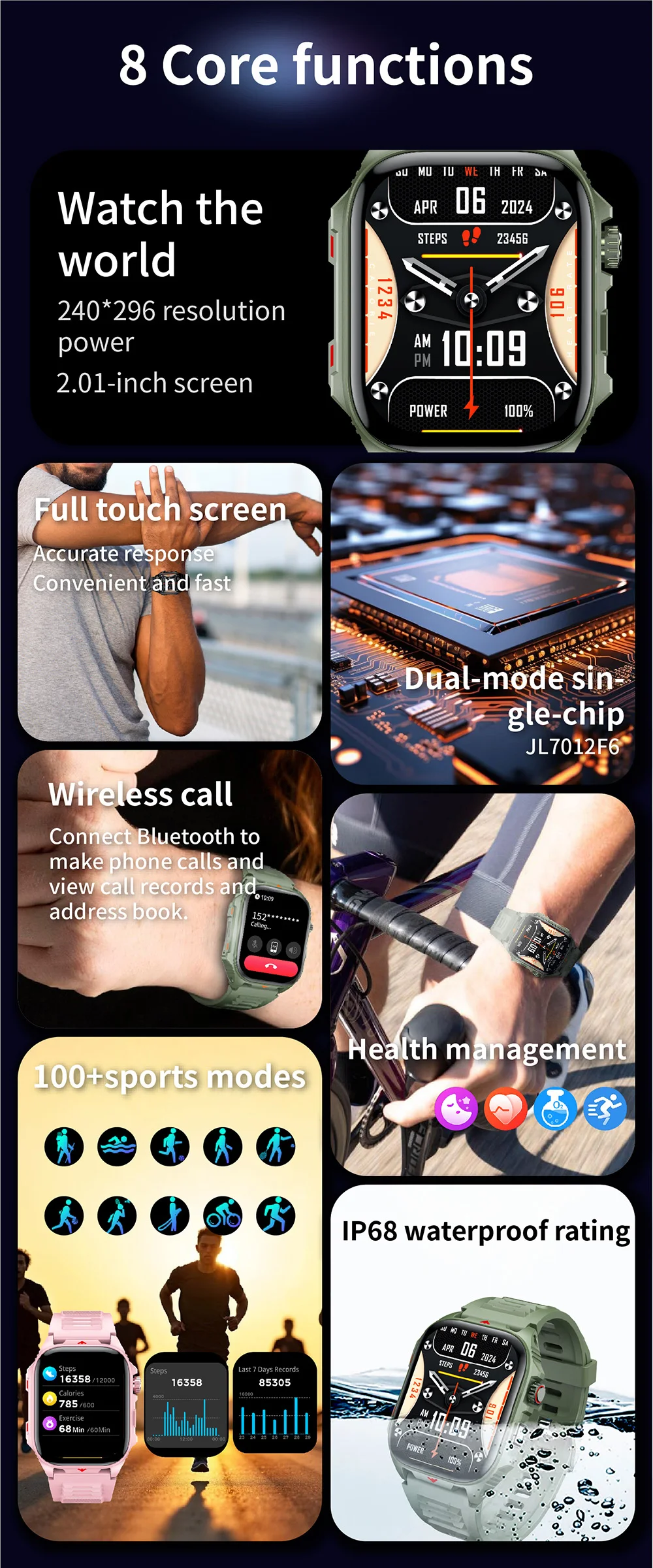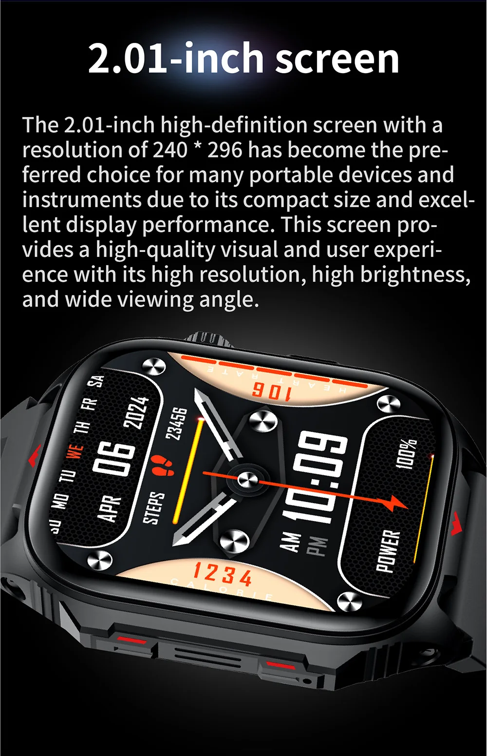 Stay on top of your game with the 2025 Outdoor Sport Smart Watch for Men. Boasting a 2.01" HD screen, LED flashlight, and a powerful 400mAh battery, this smartwatch delivers comprehensive health monitoring features like heart rate tracking and waterproof capabilities. Stay connected with BT call functionality and enjoy a range of additional functions to enhance your daily routine.