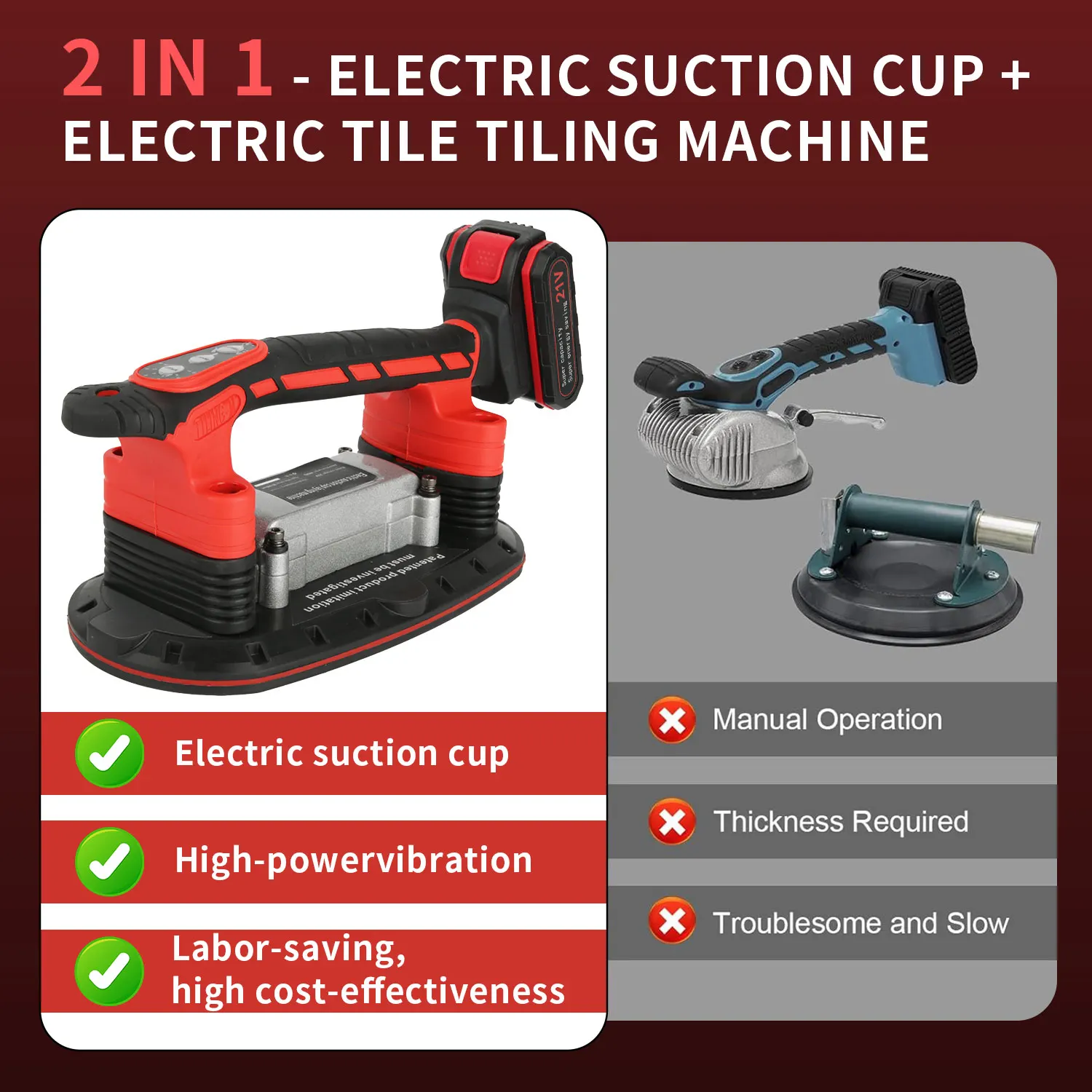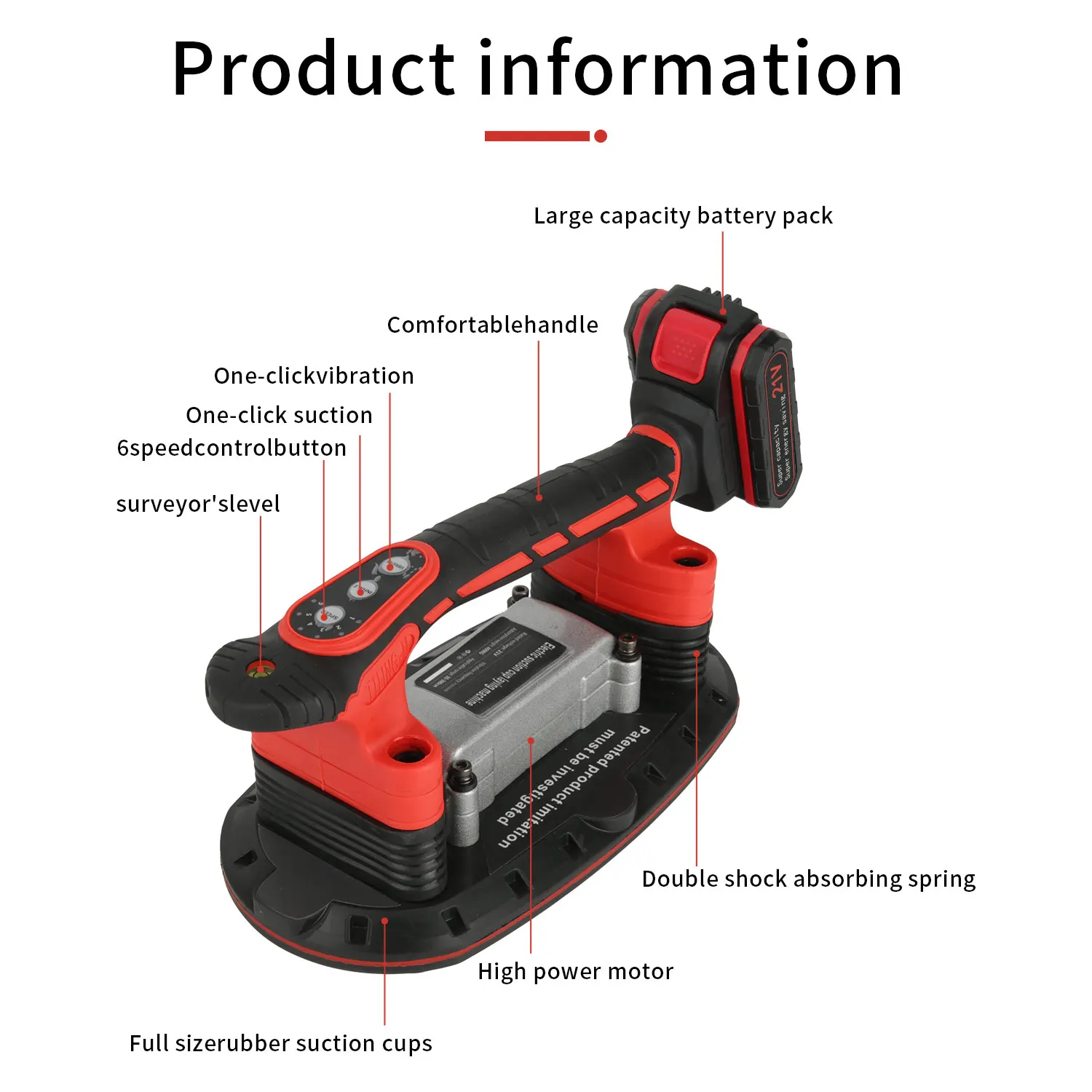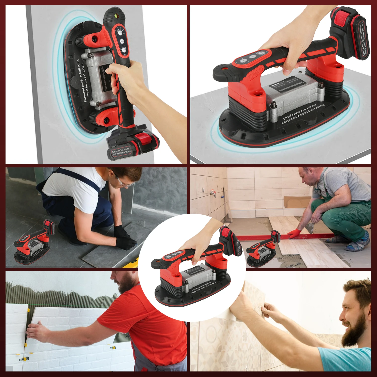 2in1 Tile Installation Tool Electric Suction Cup 400kg Loading Capacity Slip-proof Vibration Machine 6 Gears Vibration Frequency