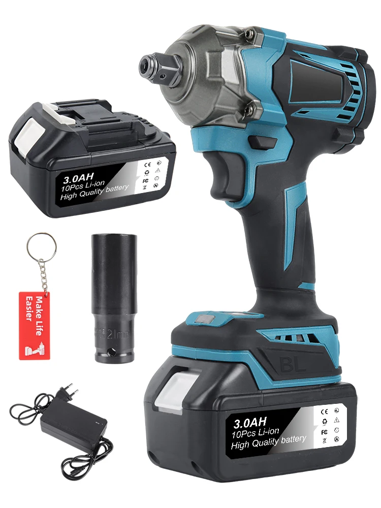 This brushless impact wrench comes with two 3.0Ah batteries, which means you can charge faster and more efficiently, and they last longer.