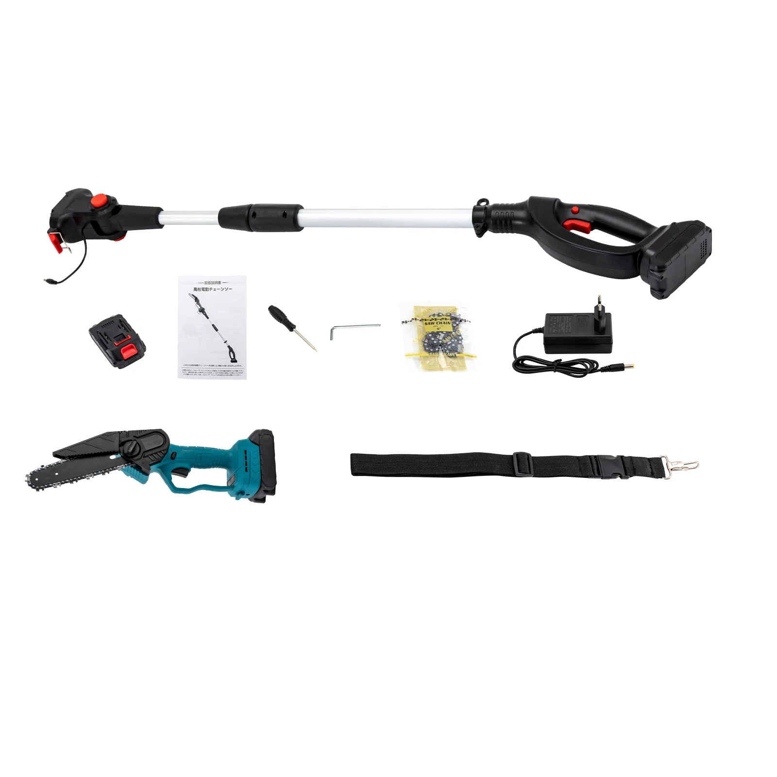The high branch saw and handheld saw two-in-one brushless pole chainsaw is the ideal tool for easily and safely completing different garden work. With its cordless design and high-capacity lithium battery, it gives you the flexibility to complete cuts in different directions without frequent recharging. Take it home and start your happy gardening journey!