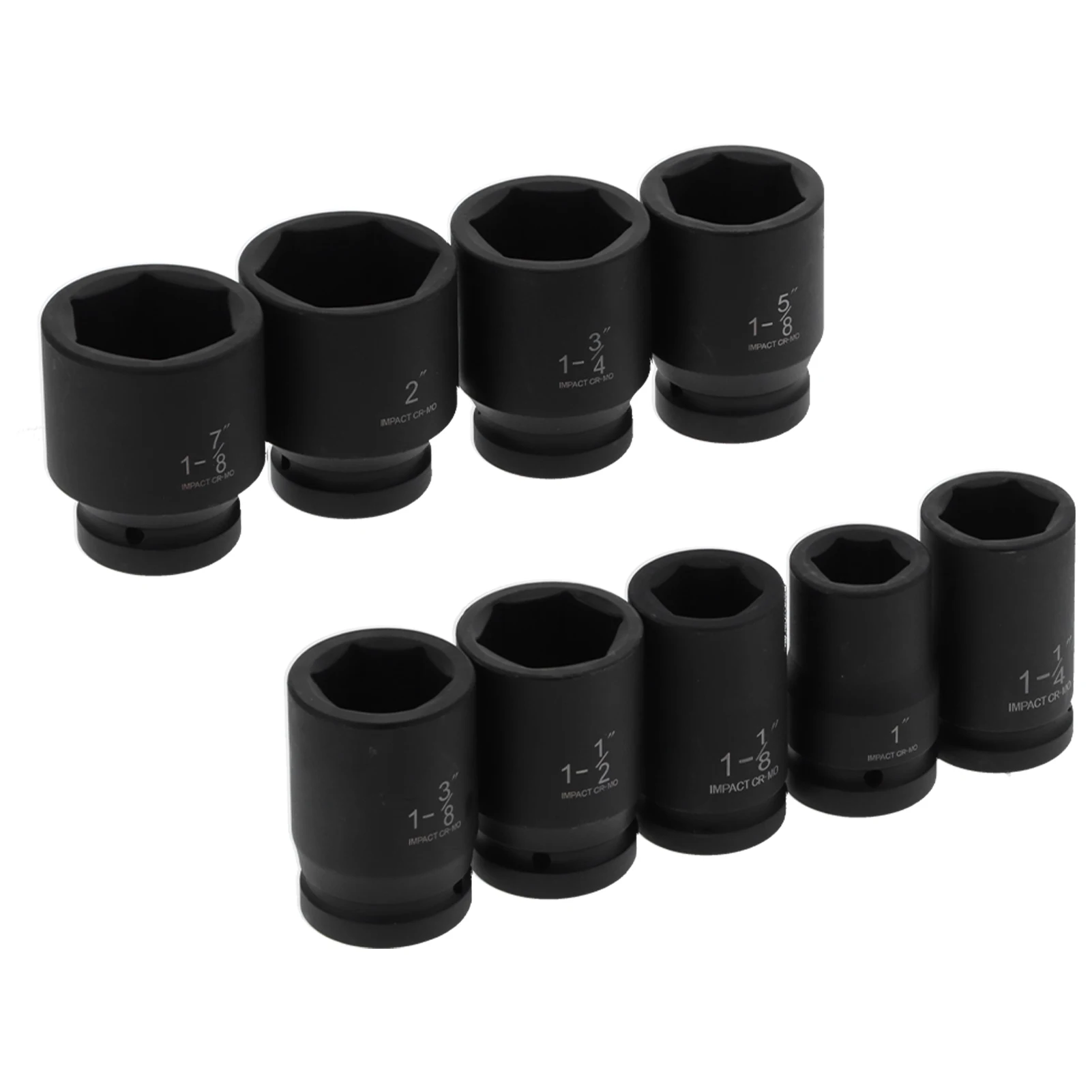 1. 9pcs socket sets with different specifications, designed for impact wrenches.