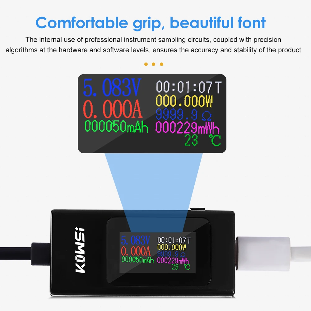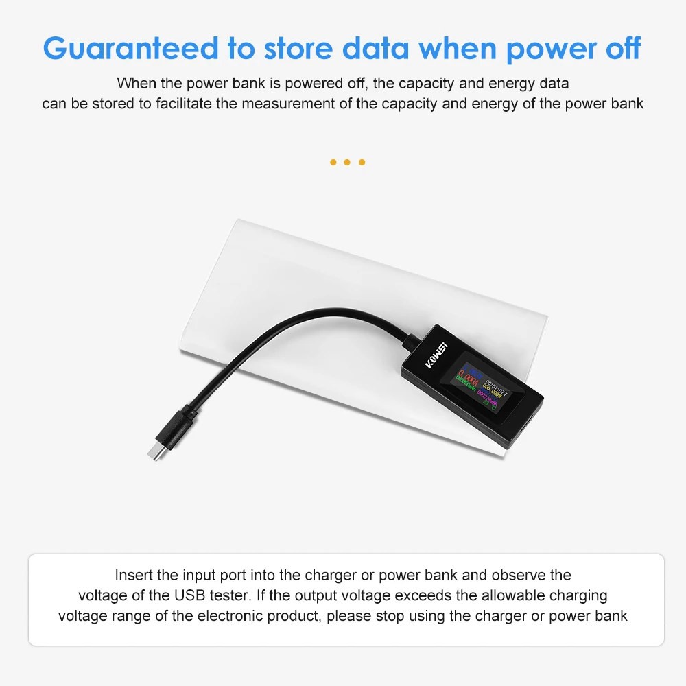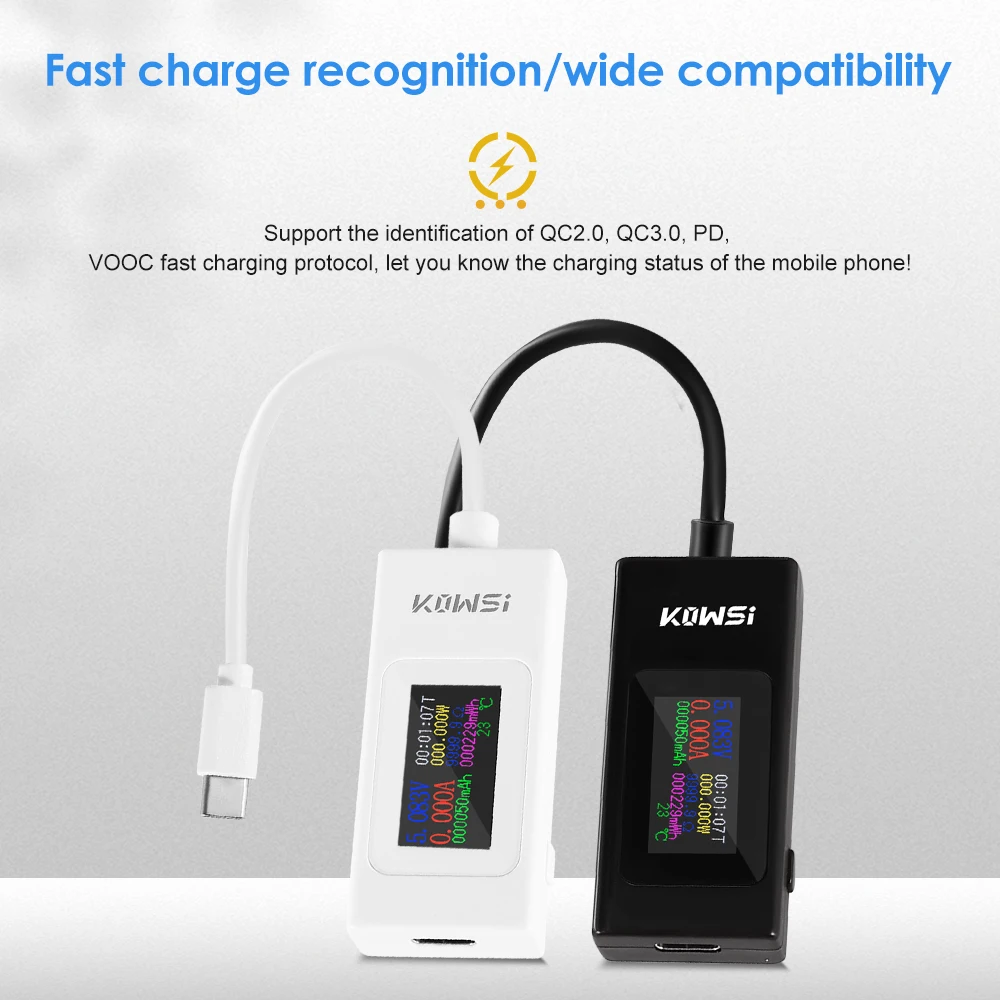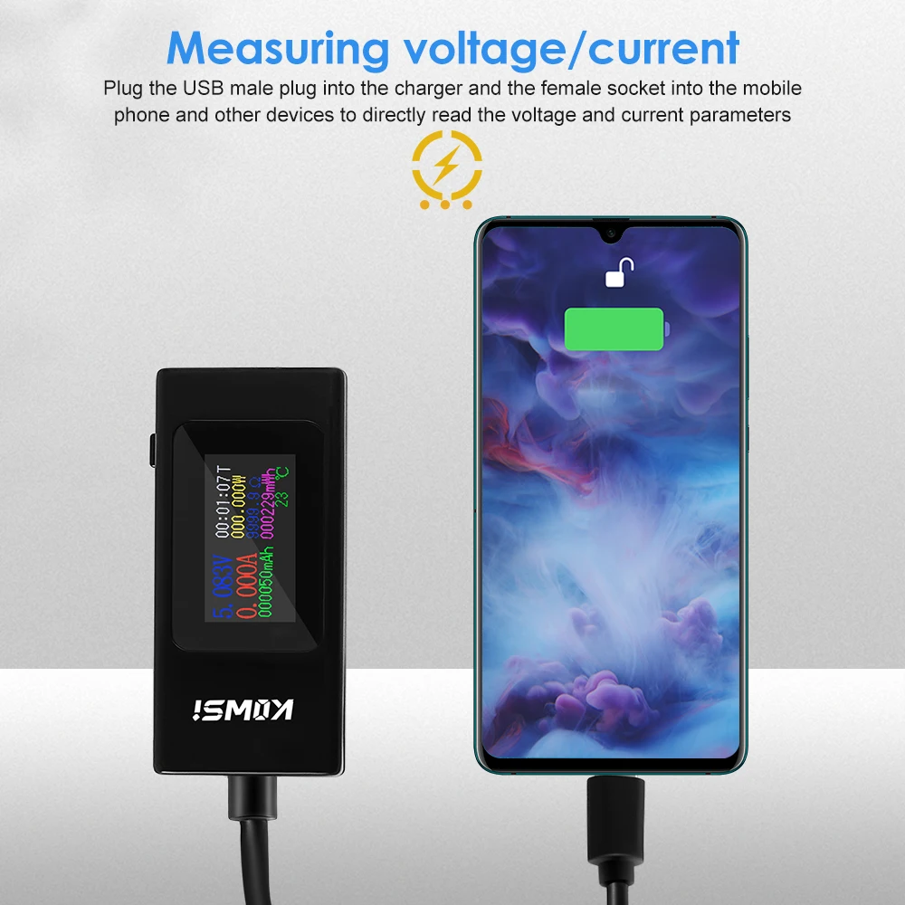 6. Easy to use. Plug the USB male head into the charger and the female head into the mobile phone and other devices to directly read the voltage and current parameters