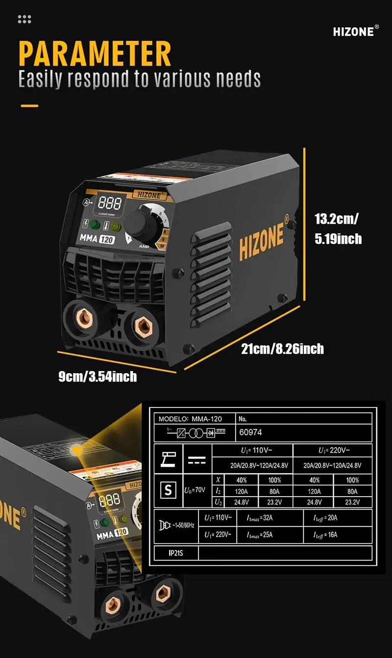 HIZONE Arc Welding Machine Semi-automatic Welding Machine IGBT Inverter Electric Welder Hot start Car Welding Machine Home DIY