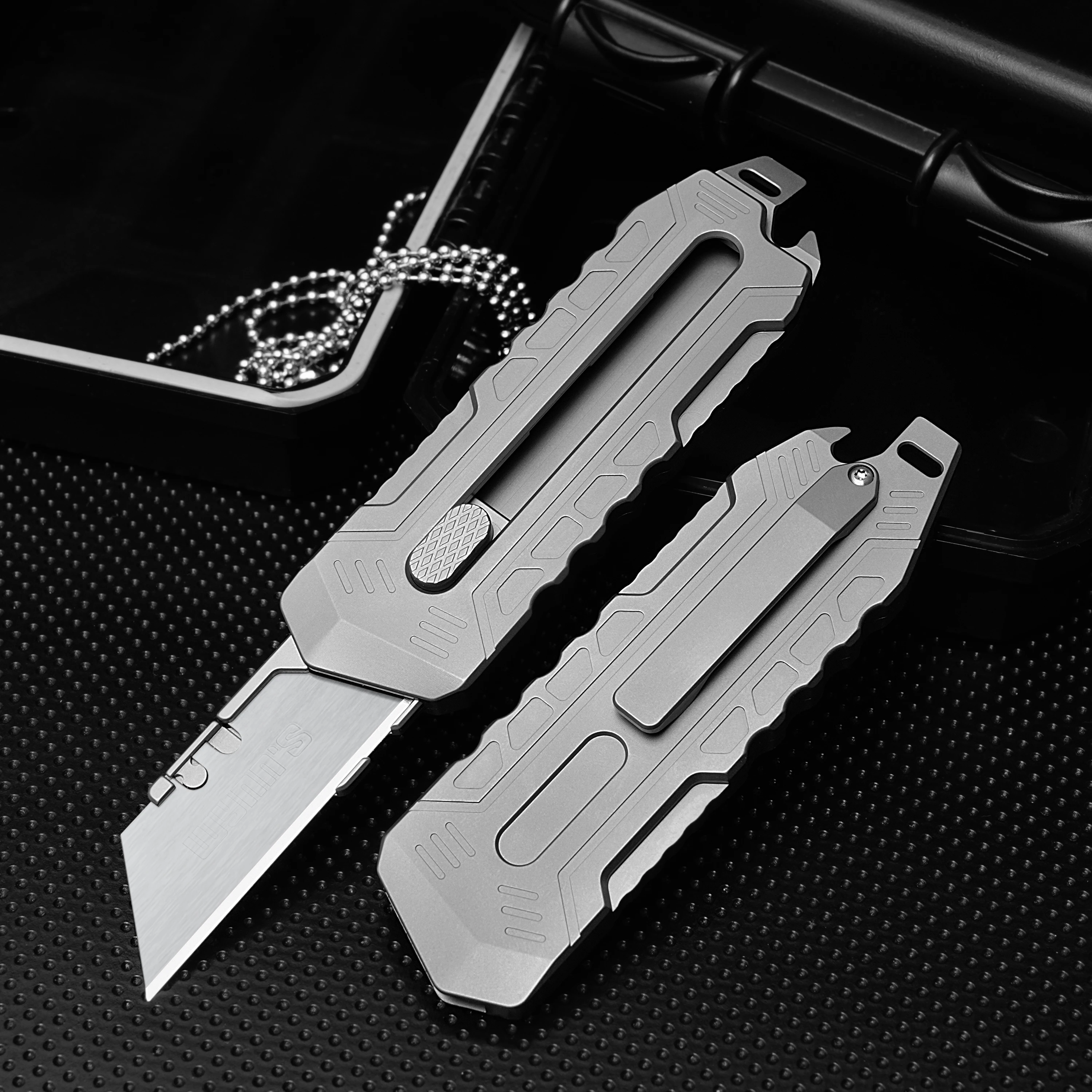 Titanium Utility Knife, With Clip/10pcs Blade and Bottle opener,Outdoor Camping/Household EDC Durable Tool Knife