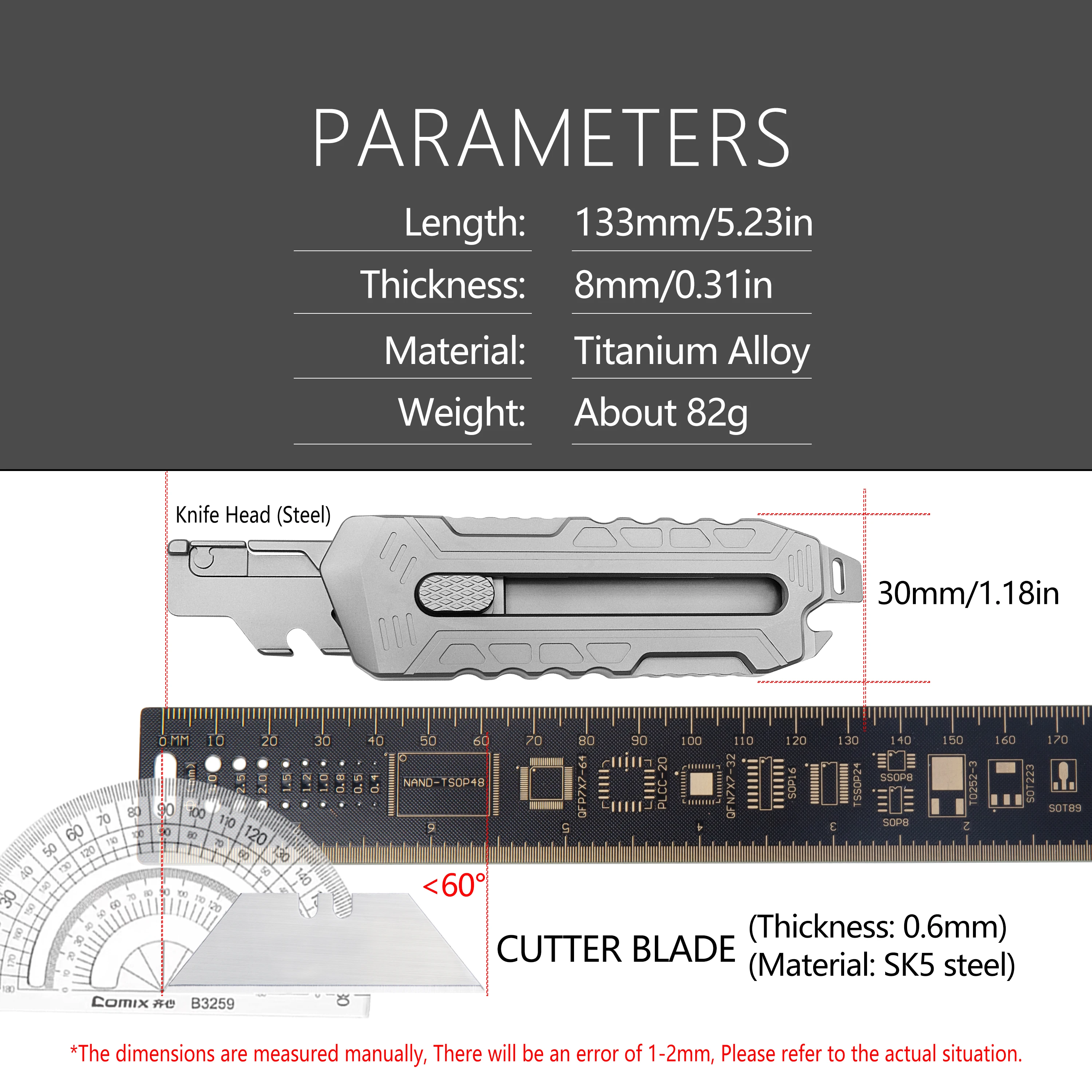 Multifunctional Titanium Utility Knife, With Clip/10pcs Blade and Bottle opener,Outdoor Camping/Household EDC Durable Tool Knife