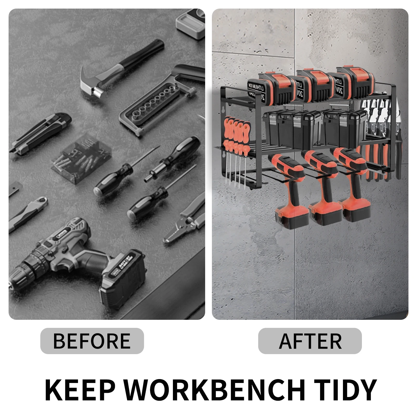 HIGH QUALITY MATERIAL: Our power tool organizer is made of heavy-duty alloy steel and electroplating process, which is strong and durable.