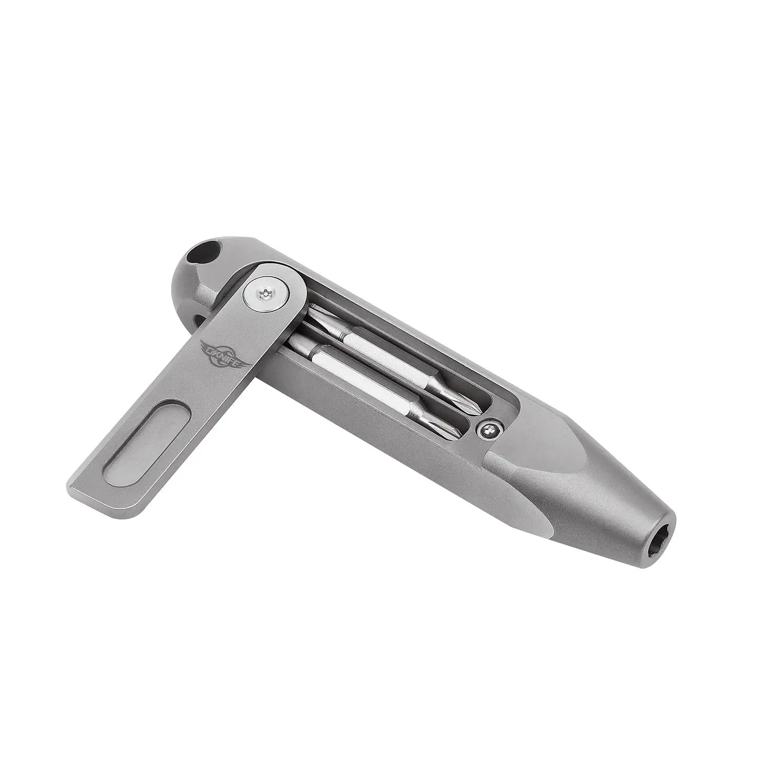 [Titanium Gadgets] The case of this mini bit driver is made of TC4 titanium alloy with a sandblasted surface for a high-end look and feel.