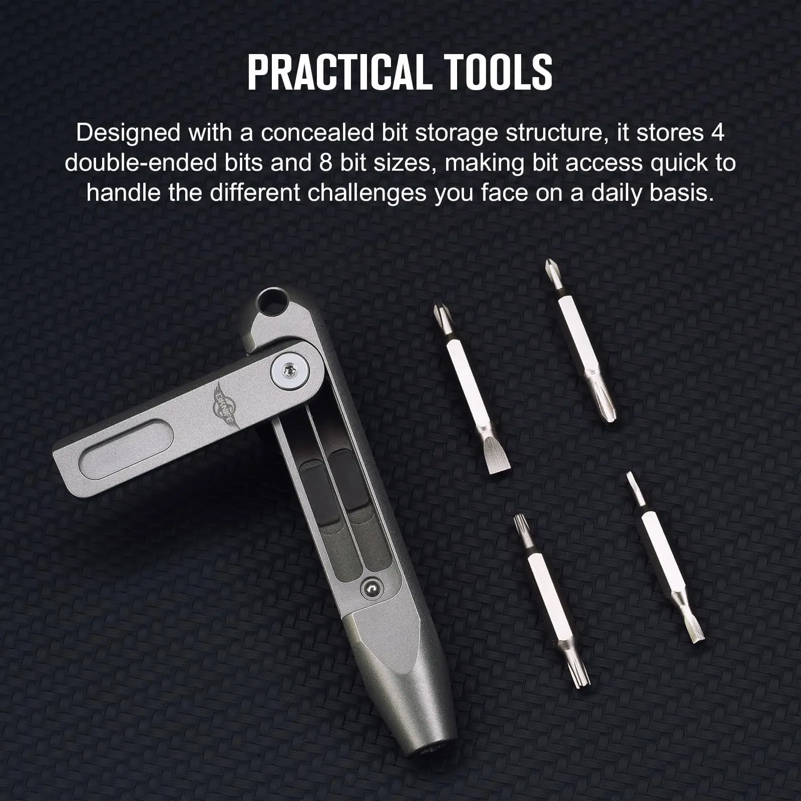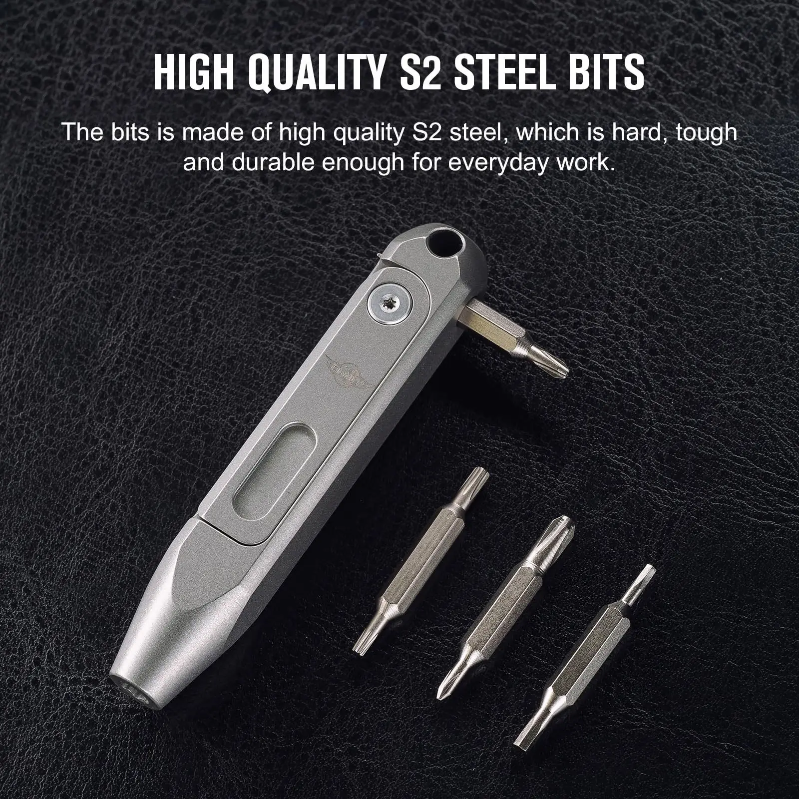 OKNIFE Otacle D1 Titanium Small EDC Multi Bit Pocket Screwdriver, 8 in 1 Mini Precision Screwdriver Set, S2 Steel Magnetic Bits