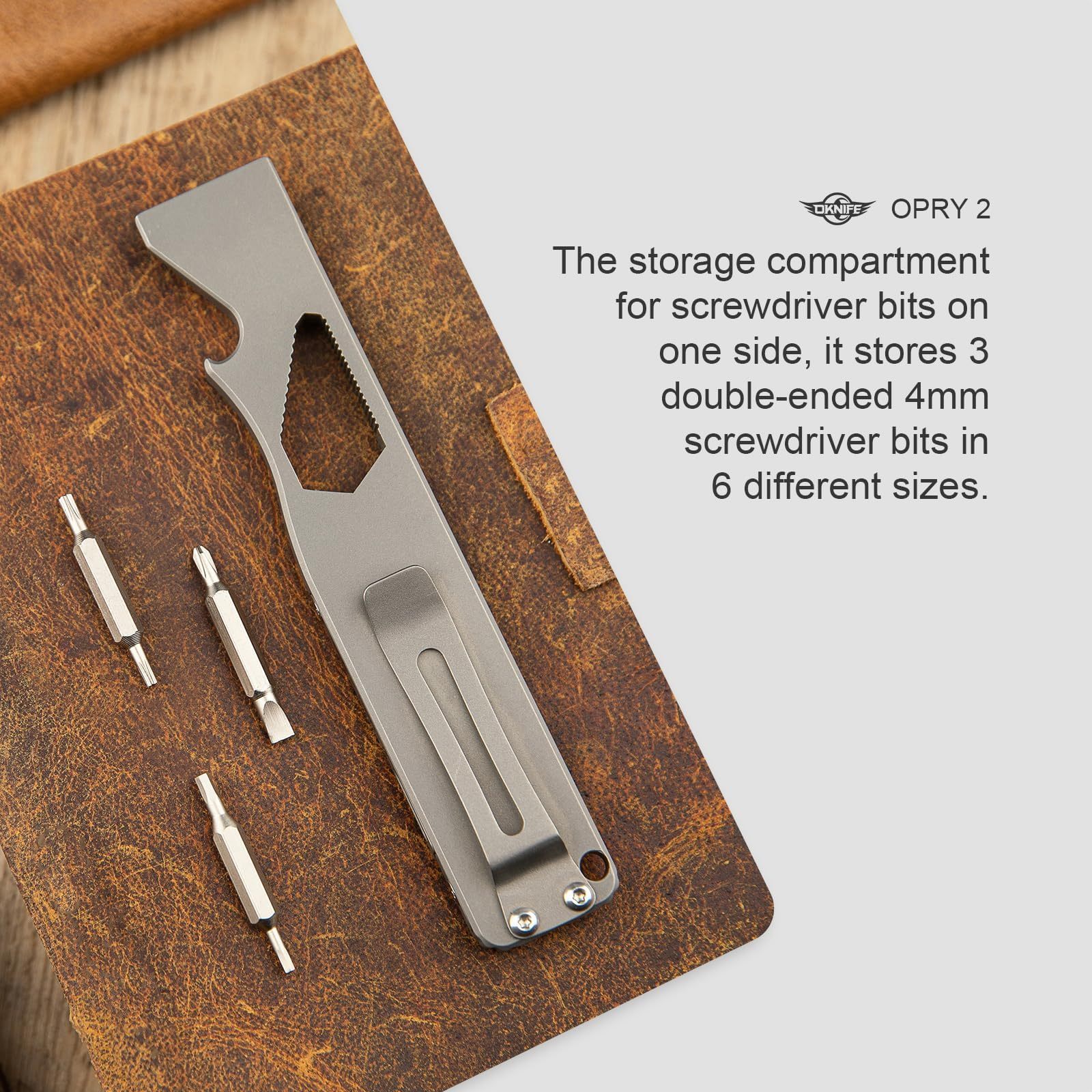 Multi-Functional EDC: It can be used as a prybar, screwdriver, bottle opener, hexagonal wrench, ruler, and well tool for various scenarios. New Storage Structure: It has better concealment, thus less likely to accidentally touch the switch and lose the screwdriver. Screw Everything Solidly: Containing three double-ended bits, with a total of 6 different sizes, is more than enough to deal with daily tasks. (It is also compatible with regular 4mm standard bits.) More Streamlined and Comfortable: The Opry 2 has a more minimal appearance, and its design ensures a more comfortable grip.