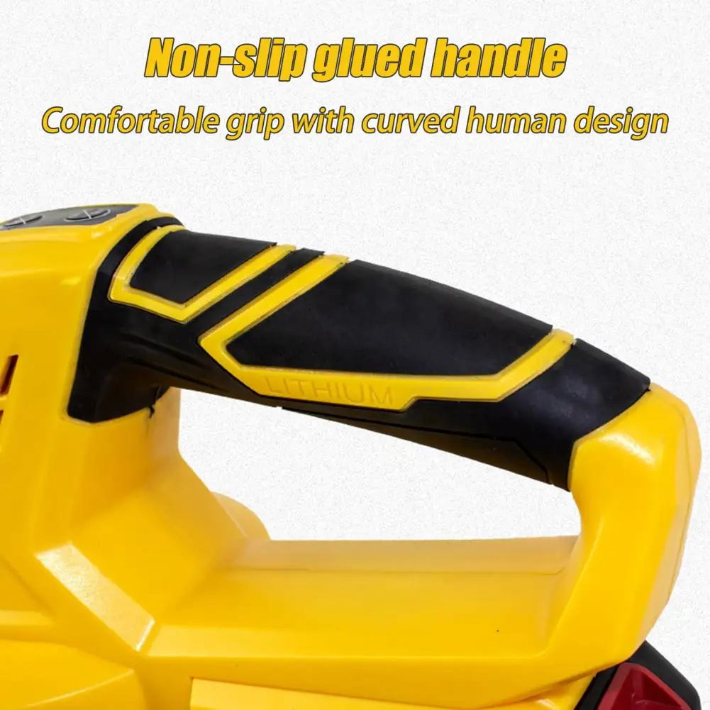 The ergonomic handle provides a comfortable grip for extended use, enhancing user experience. With a rechargeable lithium battery, enjoy cordless operation for convenient portability, allowing you to carry and use the blower effortlessly.