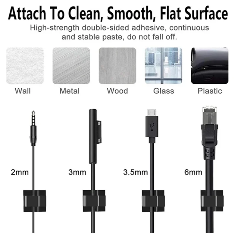 50PCS Cable Organizer Clips Cable Management Wire Manager Cord Holder USB Charging Data Line Bobbin Winder Wall Mounted Hook