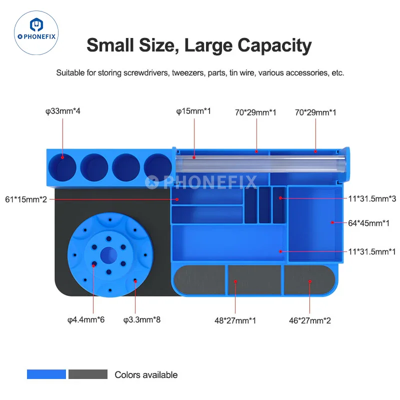 1. RELIFE RL-001H rotating storage holder, professional classified storage, can be freely rotated 360°, suitable for storing screwdrivers, tweezers, parts, tin wire, various accessories, etc.