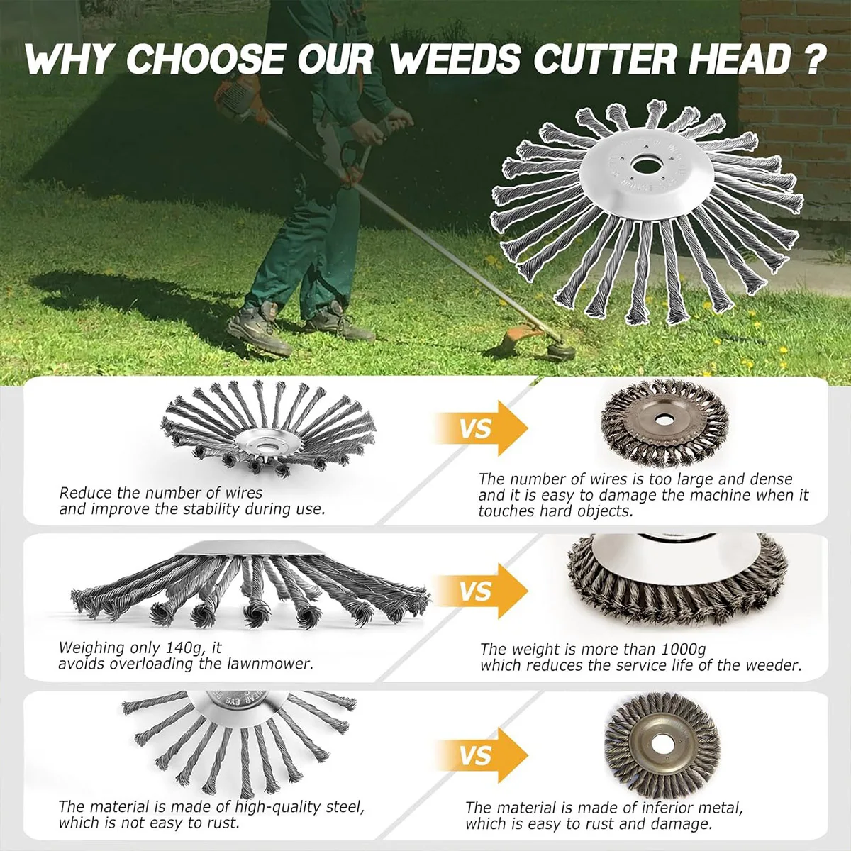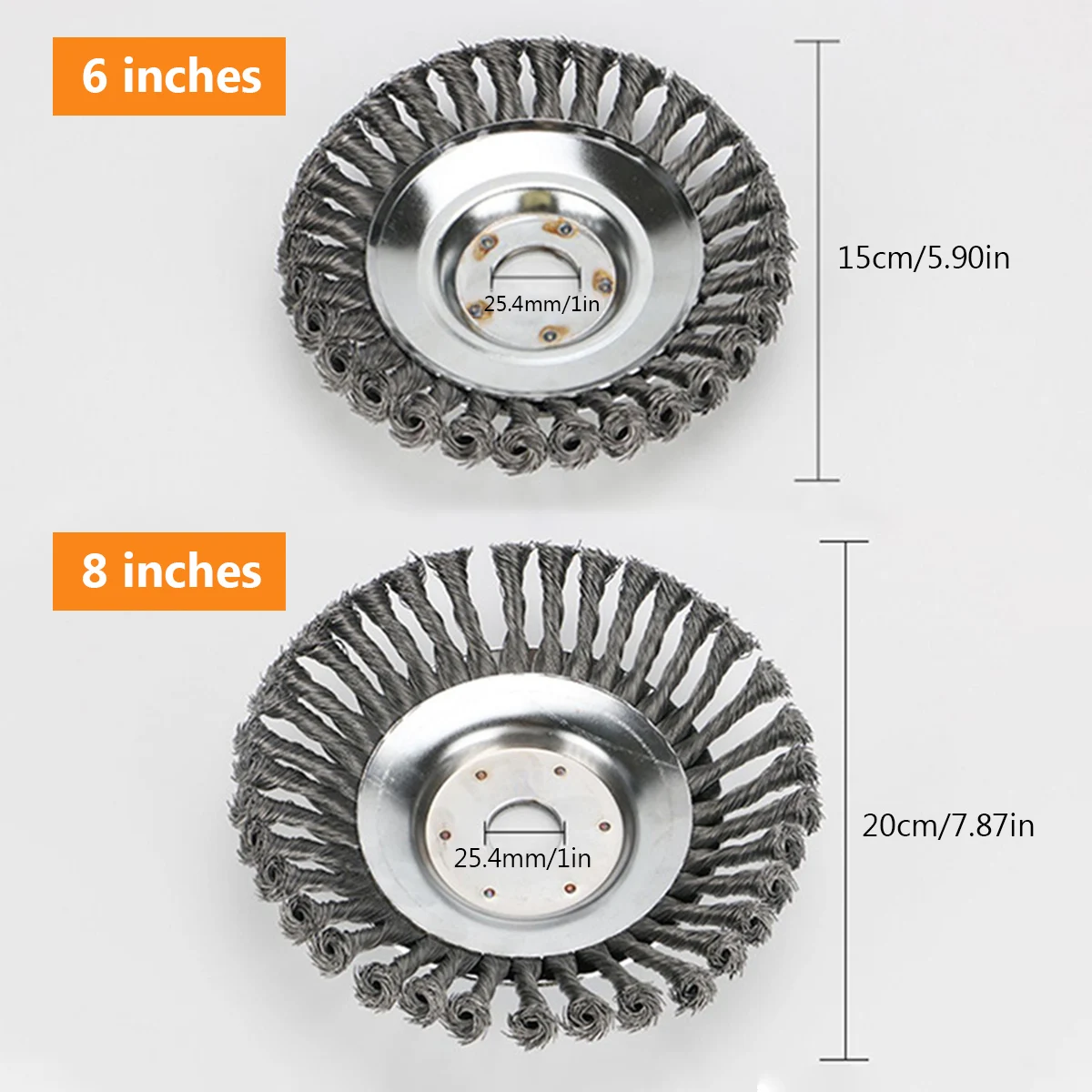Universal Upgrade 6/8 Inch Weed Brush Cutter Head Lawn Mower Grass Trimmer Head Steel Wire Wheel Brush Garden Trimmer Head