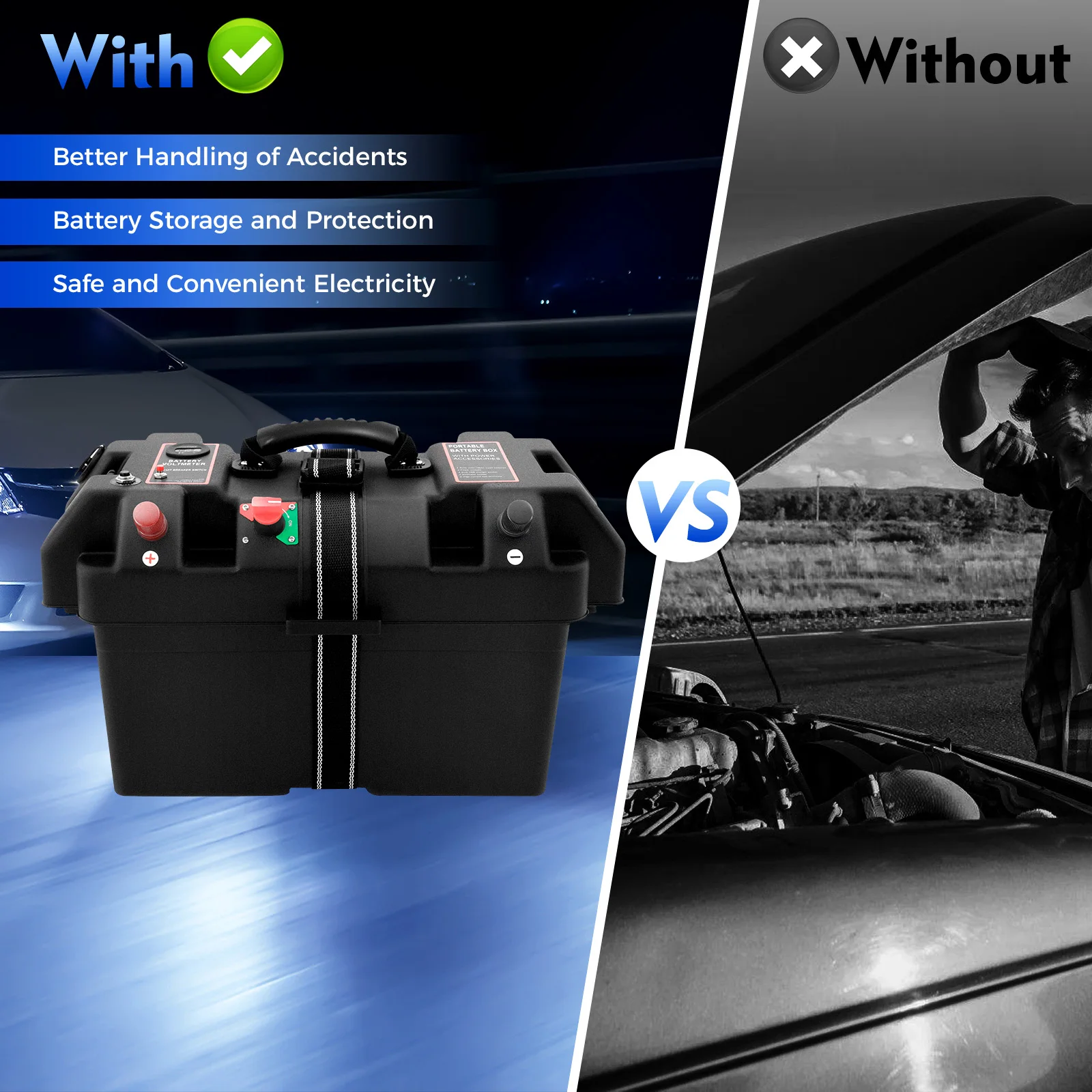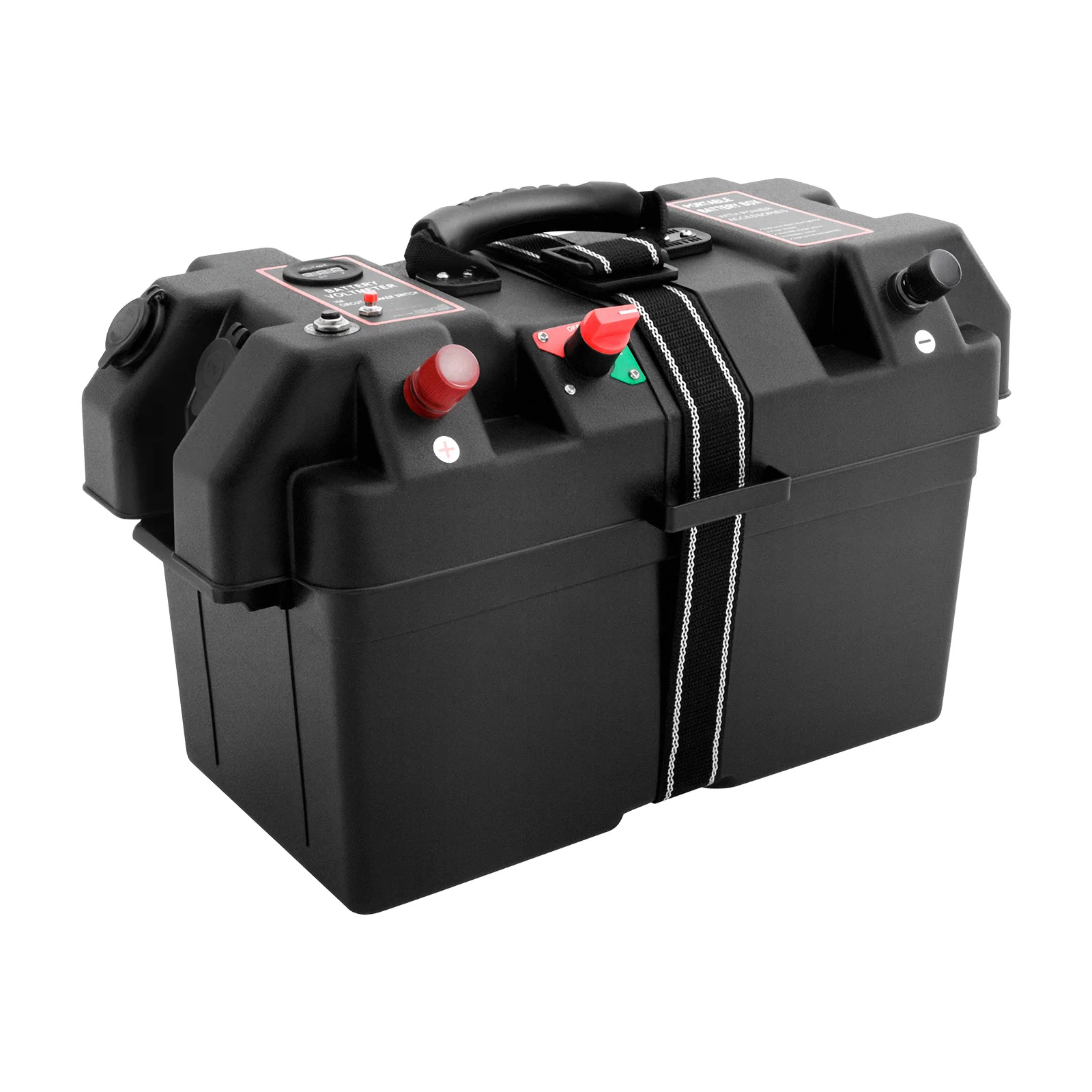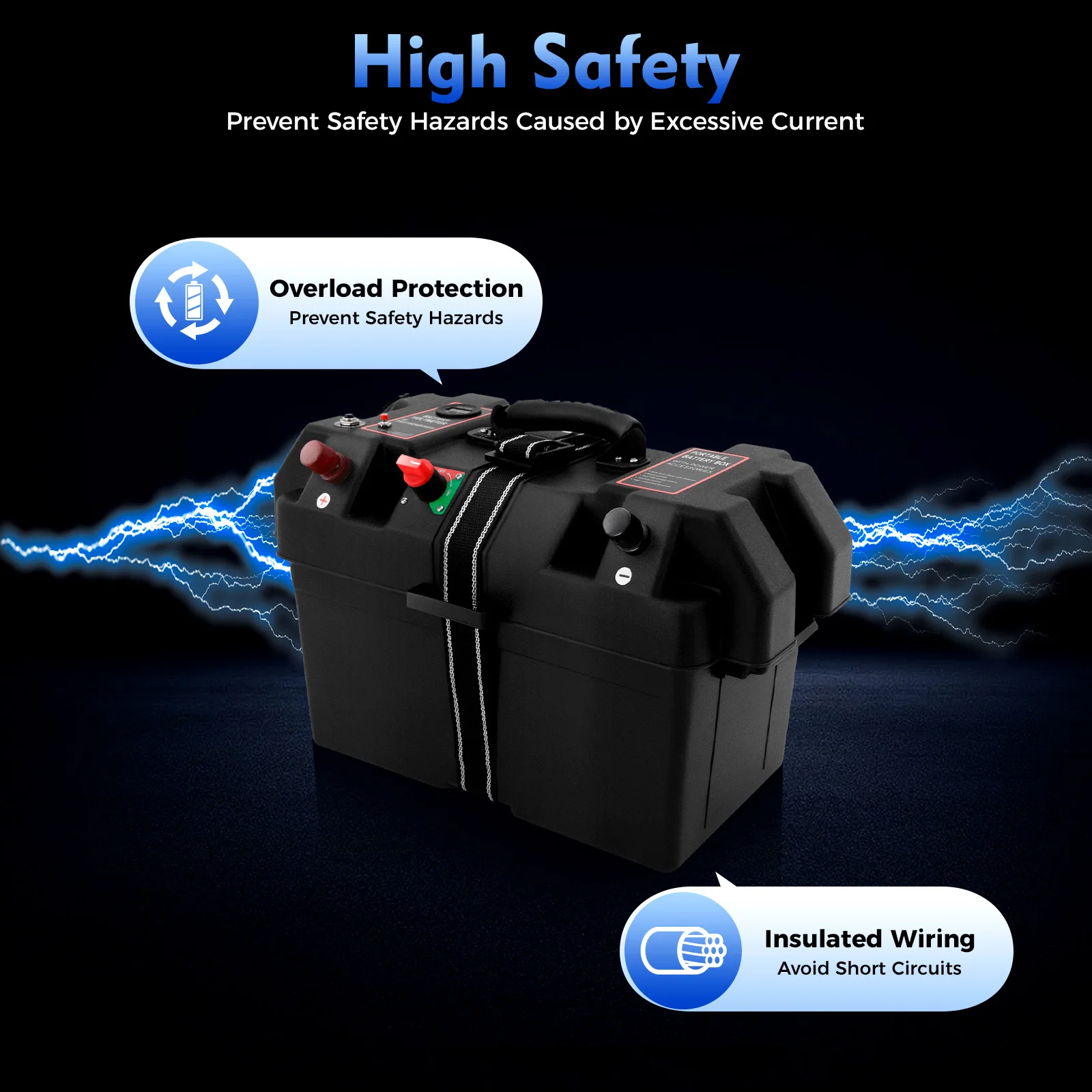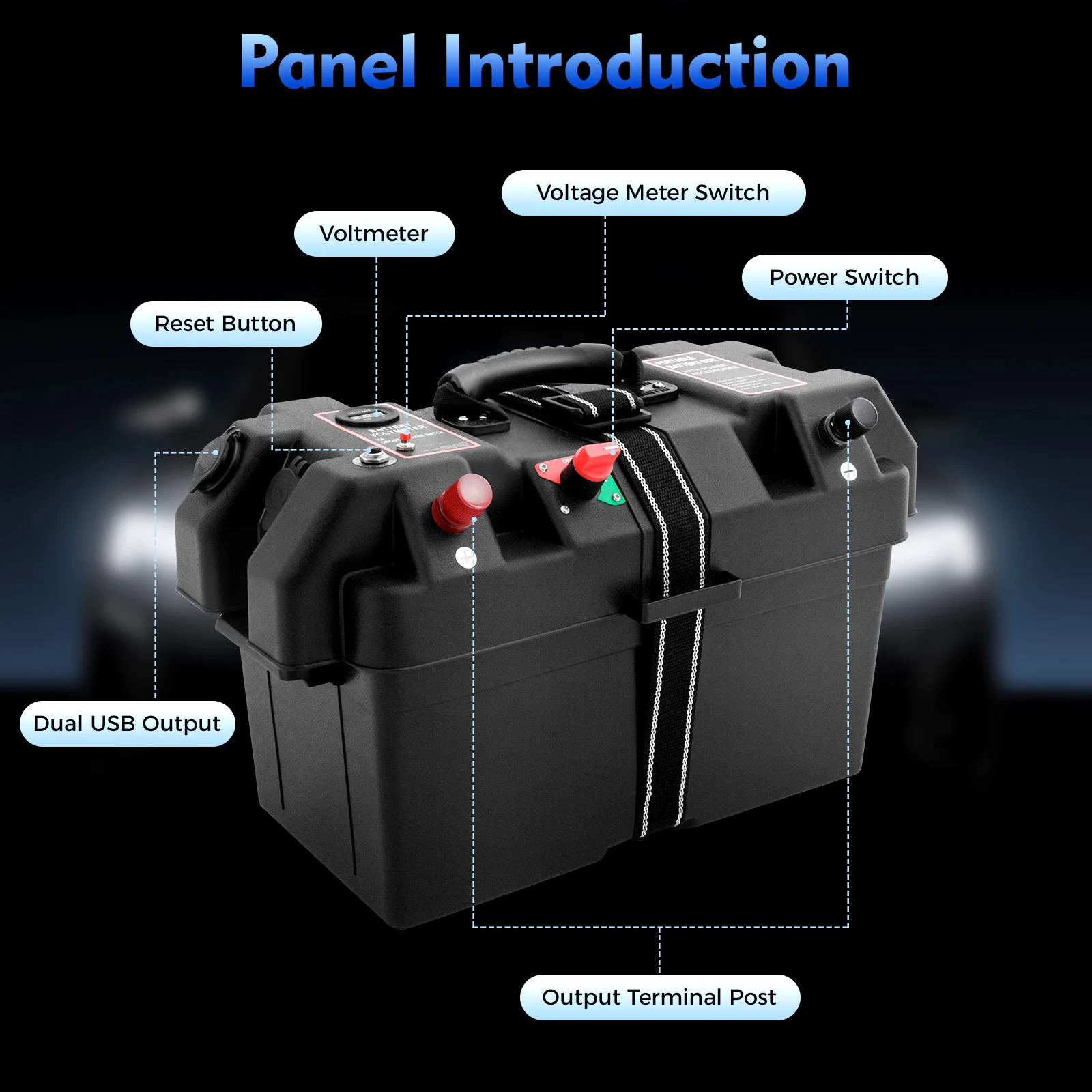 Multi-function Battery Box, Dual USB Ports, Portable Battery Case, Black Smart Battery Box