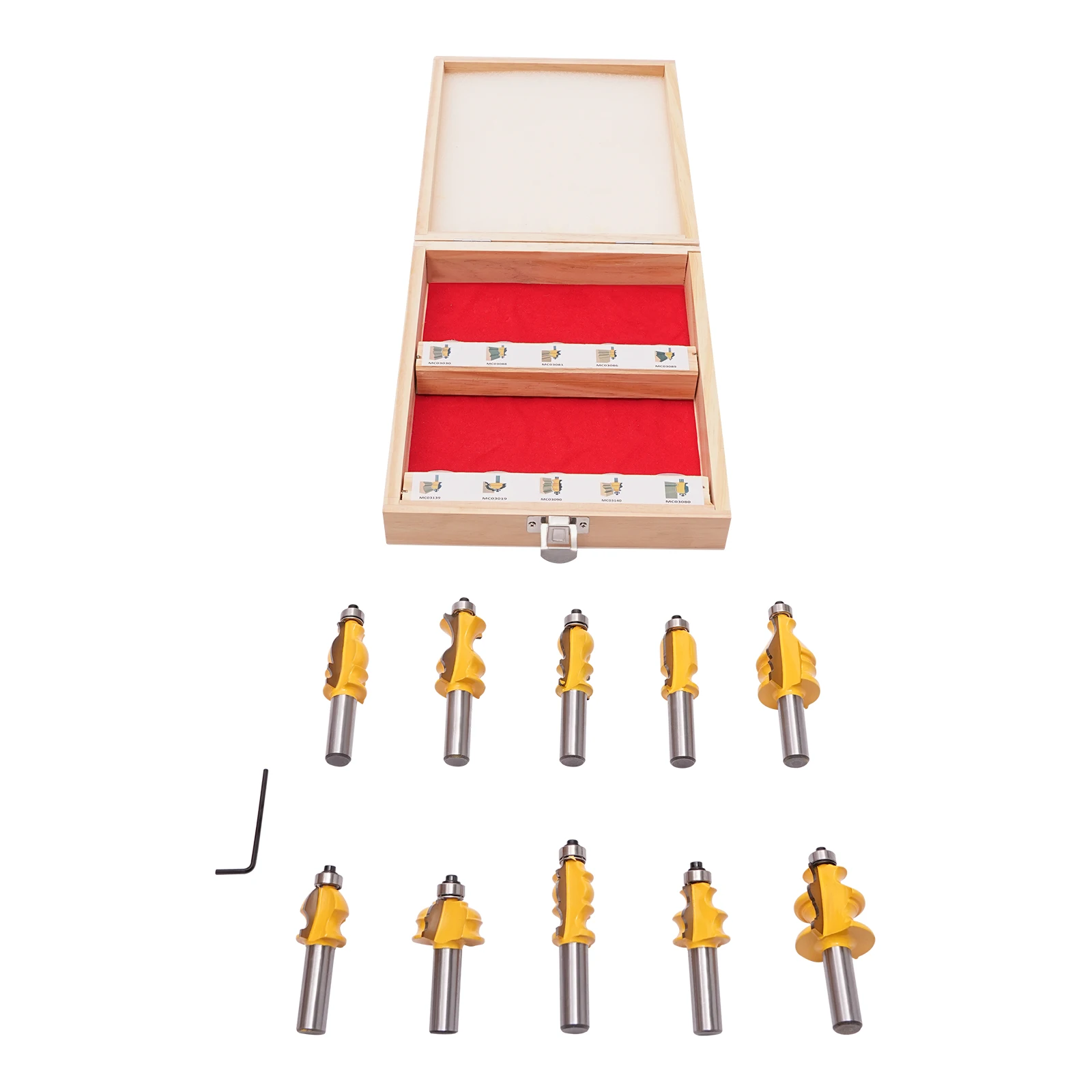10-Piece Woodworking Router Bit Set, 1/2" Shank Carbon/Tungsten Steel for Woodworking, Trimmers & Edge Profiling, Includes Case