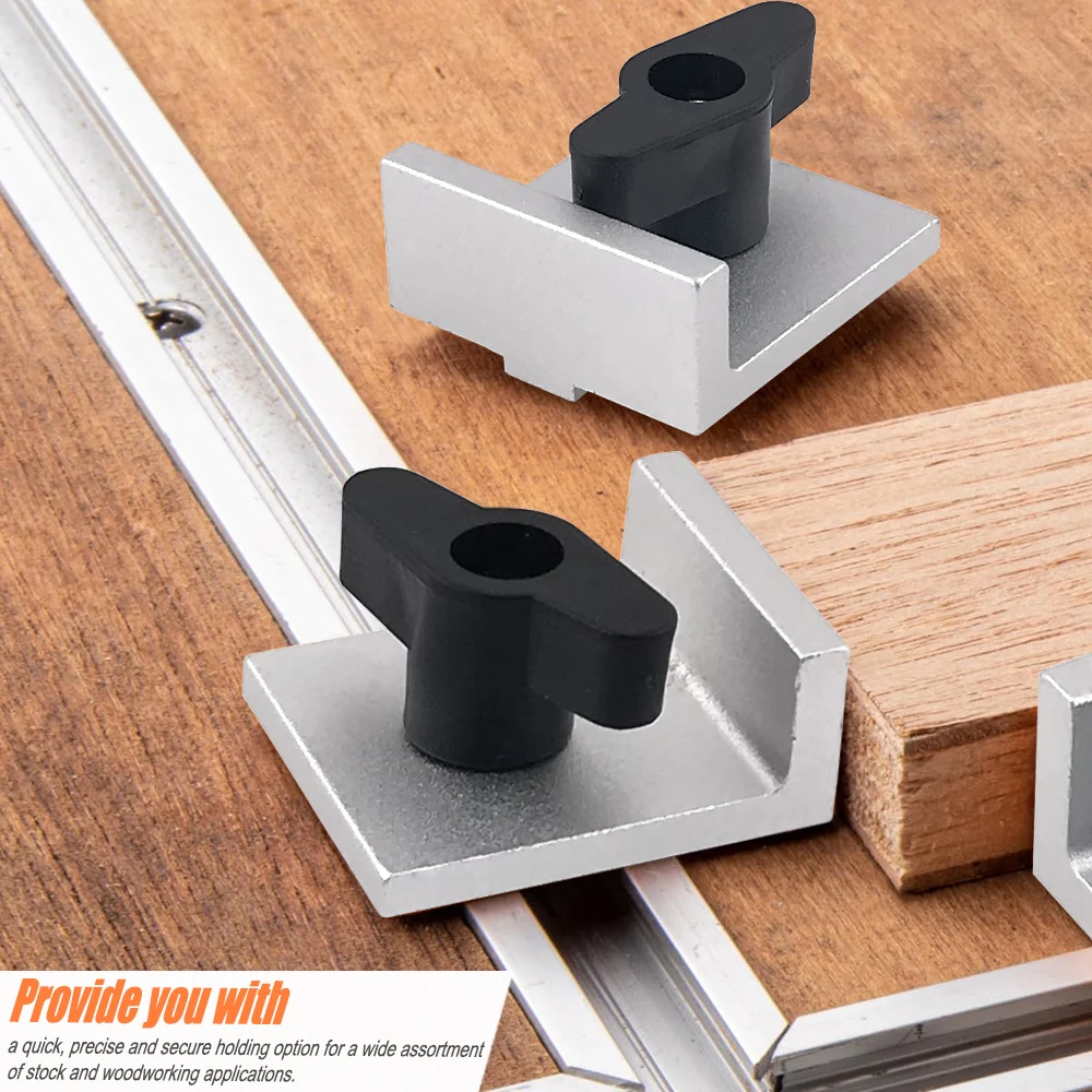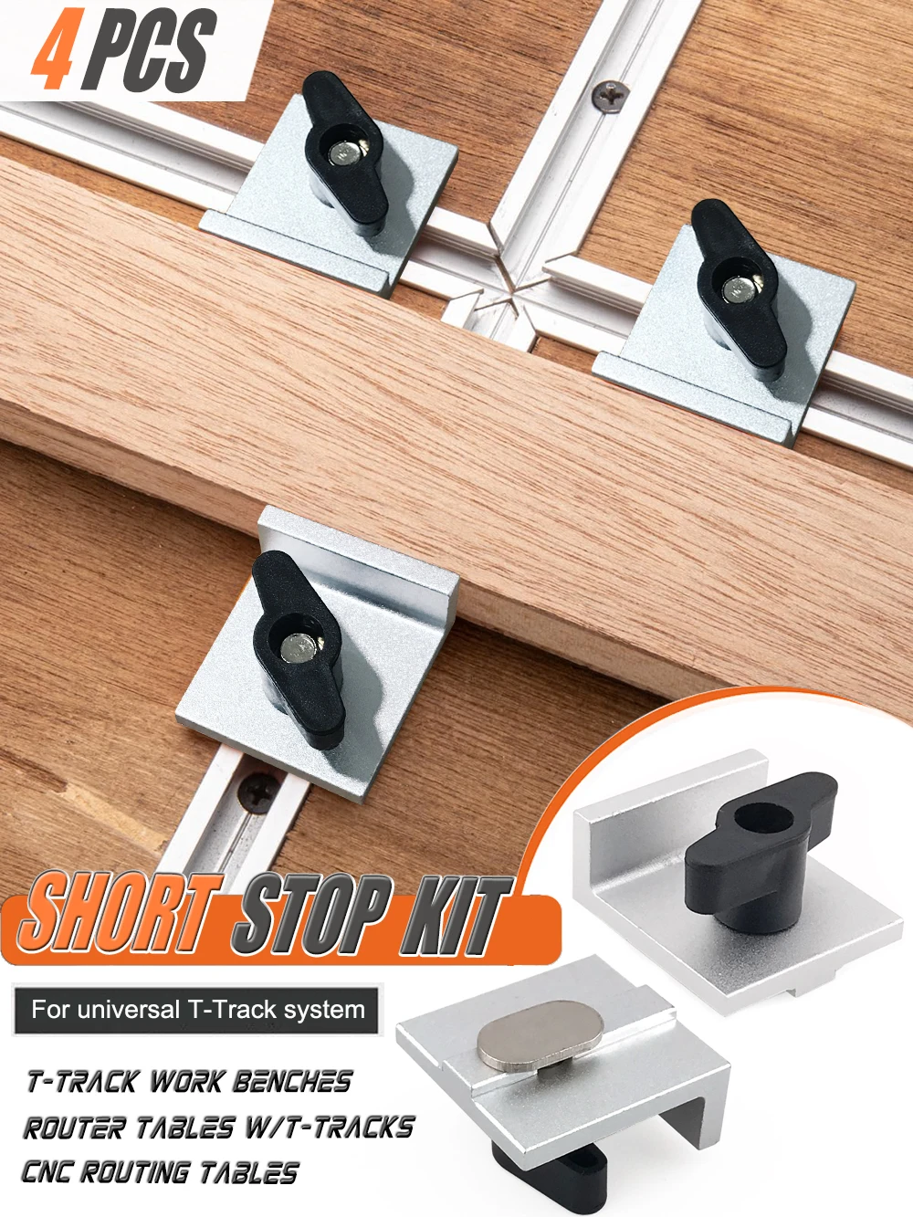4 Pcs Silver Short Stop Kit with Knobs T Track Stop Block for T-Track Woodworking Sanding and Routing