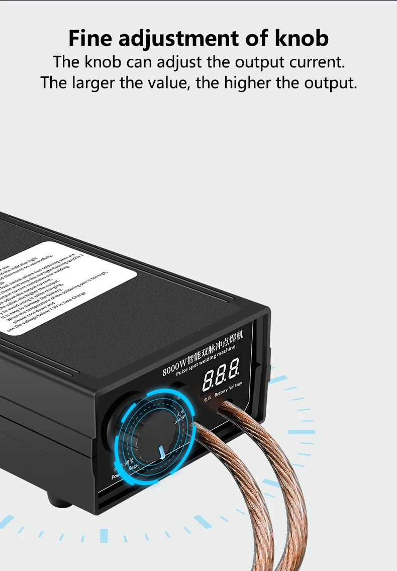 2. Adjustable Output: The knob fine-tuning feature allows for adjustment of output current, enhancing precision and control. A higher adjusted value corresponds with higher output.