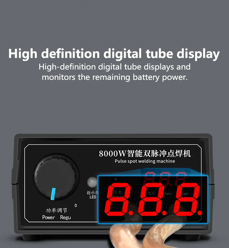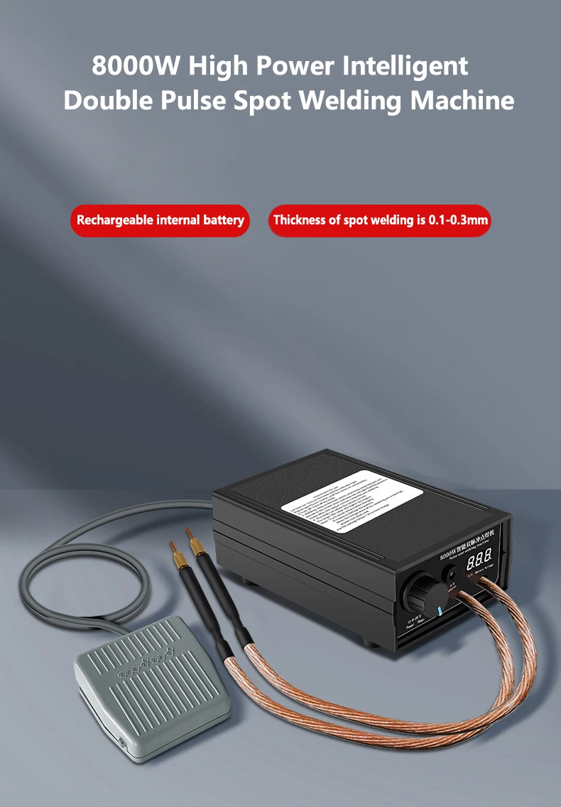 1. High-Powered Spot Welder: This 8000W high-powered, dual pulse spot welder operates with an internal rechargeable lithium battery. Exceptionally efficient and long-lasting, it's designed for consistent performance in home DIY tasks.