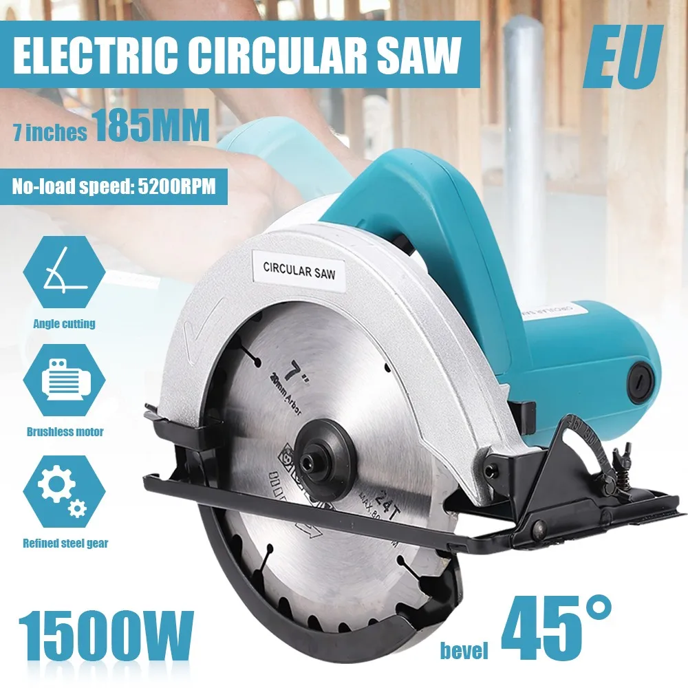 7Inch Brushless Circular Saw 185mm 1500W Cordless Electric Saw Adjustable Wood Cuttiing Machine Handheld Woodworking Saw