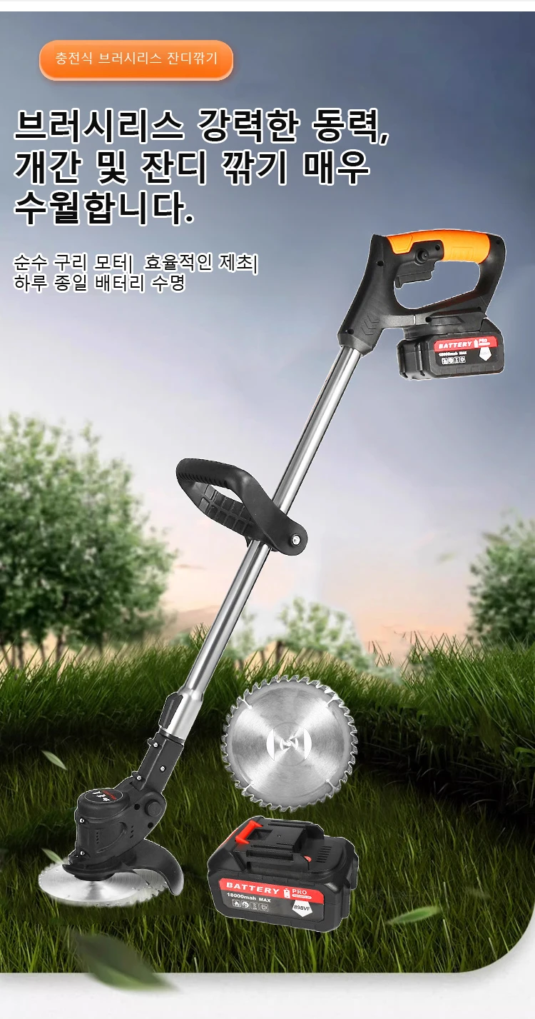 1+1/1 Rechargeable Brushless Lawn Mower Household Small Electric Rechargeable Lawn Mower Gardening Tool Low Noise/Simple Operation/Resistant and Durable