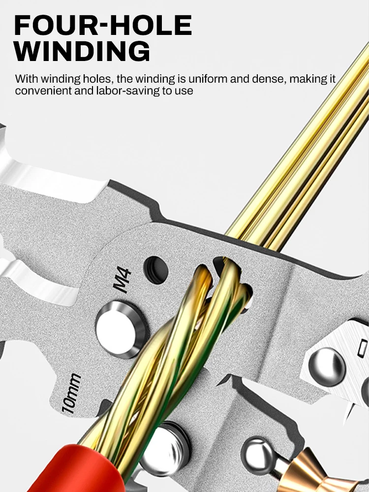 Improve your wire work with our Multi-function Wire Crimper! This compact tool features standardized stripping holes for precision, improved grip stability, and high resistant to abrasion. Portable and efficient for all your wire crimping needs.