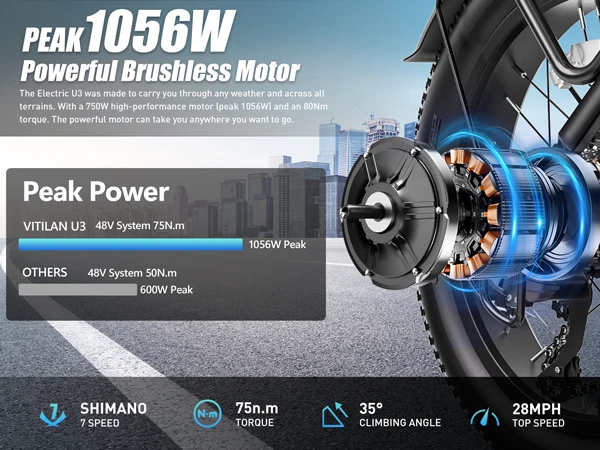 E-Bike U3 750W Motor 48V13AH Battery Suspension Shock Absorption Fold Electric Bike 20-Inch Tire All Terrain Electric Bicycle
