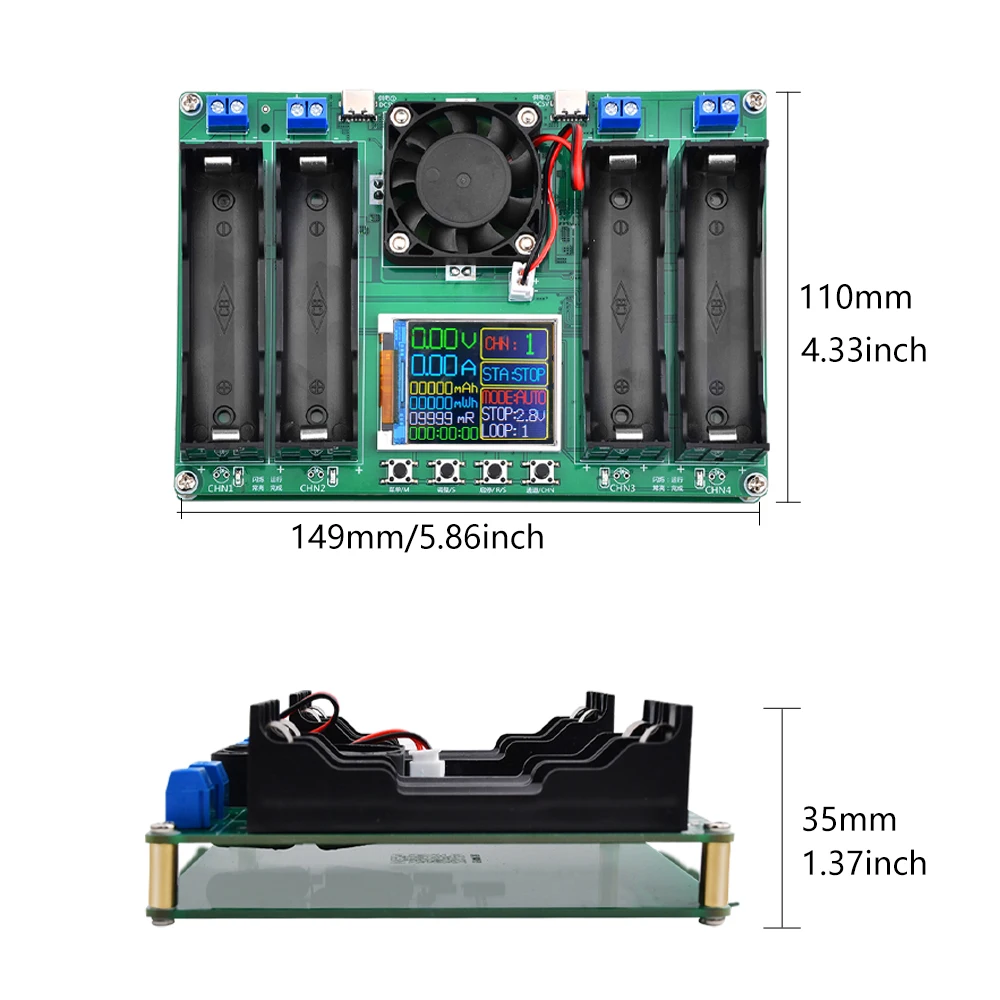 The product supports four-channel capacity and internal resistance measurement