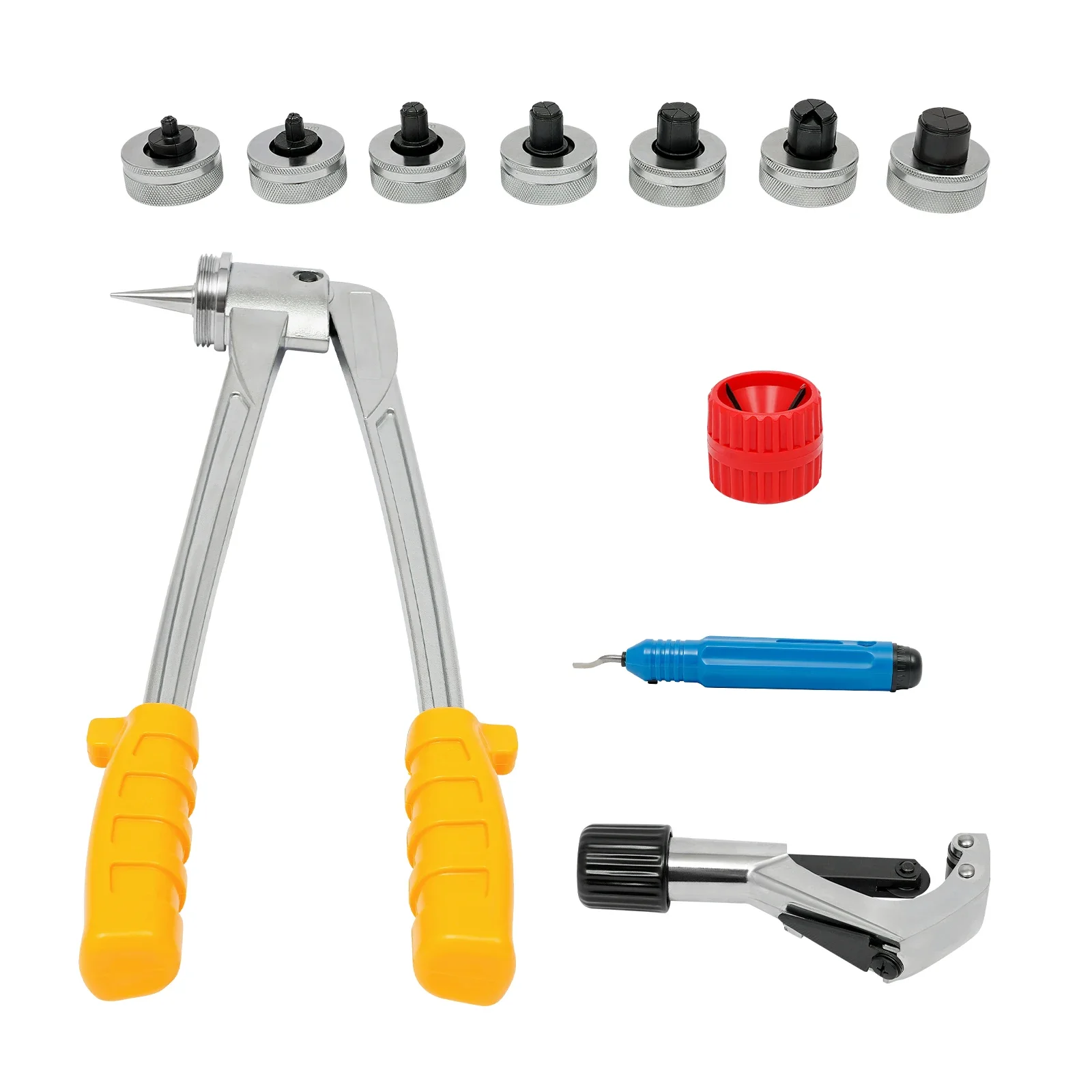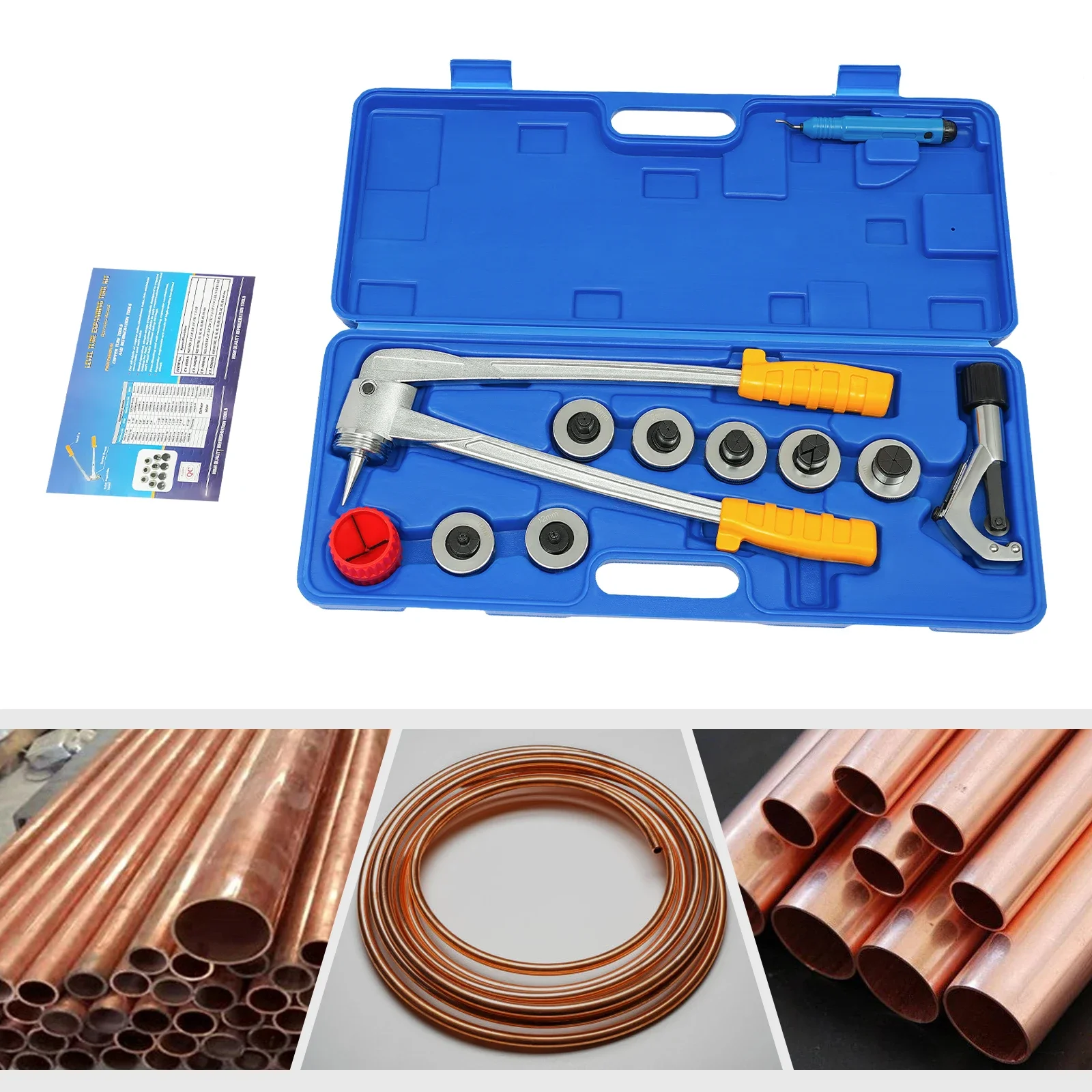 Complete Set: The kit includes 1 tubing expander body, 7 expander heads, 1 pipe cutter, 1 chamfering tool, 1 deburring reamer, and 1 thickened carrying case.