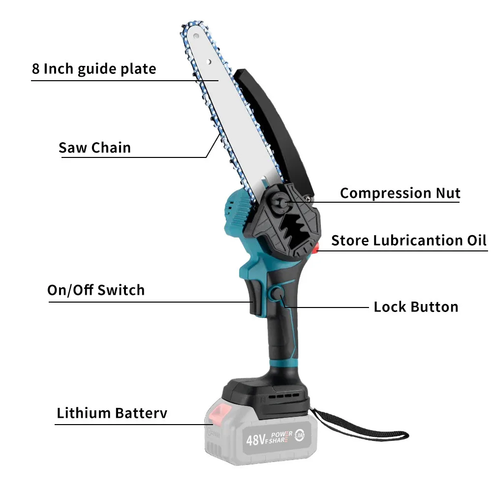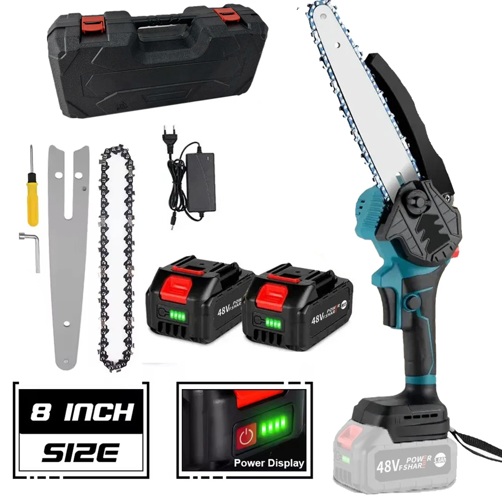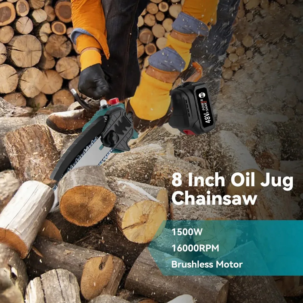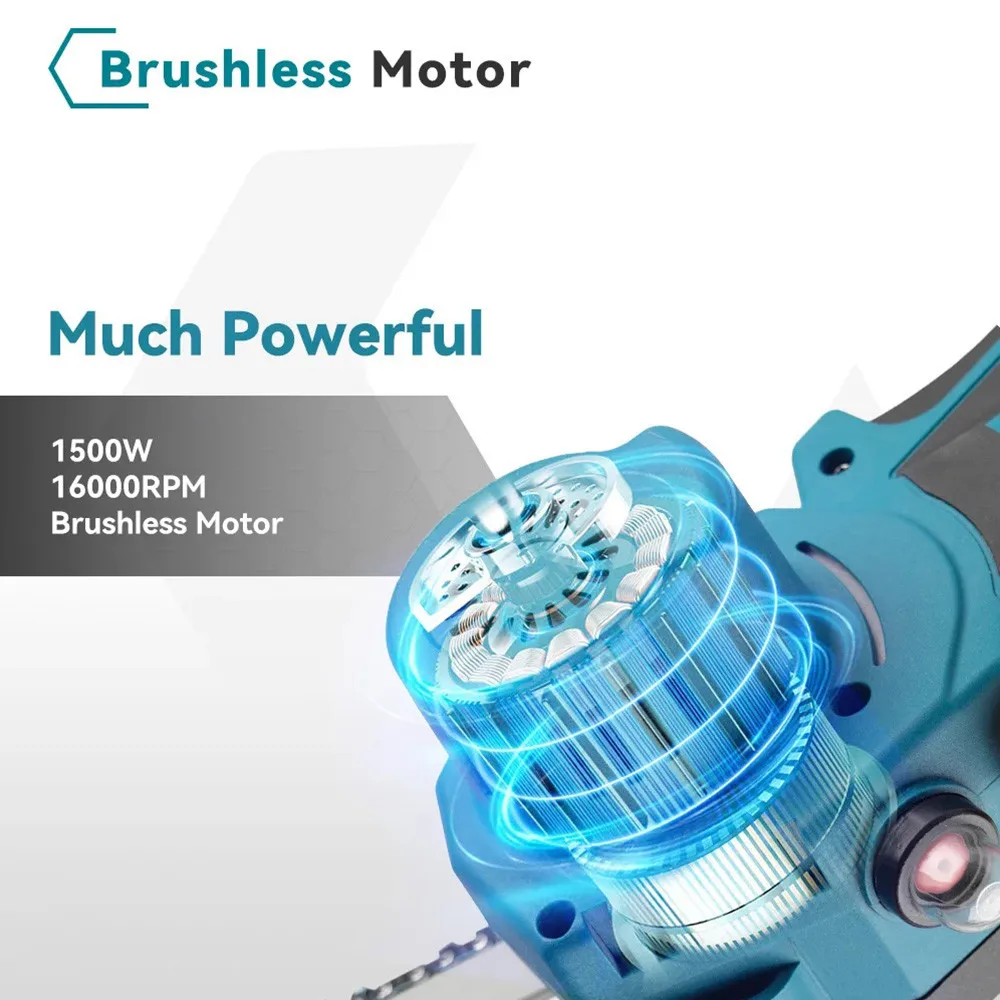 Revolutionize your woodworking experience with the 8-inch 1500W Brushless Electric Chainsaw. This cordless powerhouse, compatible with Makita 18V batteries, boasts a brushless motor for unparalleled strength and cutting speed, maximizing efficiency with its 16000RPM speed. The high-quality alloy chain ensures durable, smooth cutting without jams, while the automatic lubrication system keeps it running seamlessly. Perfect for forest cutting, woodwork, and pruning, this versatile tool features a portable design with an anti-skid handle for comfortable use. The widened baffle prevents woodchips from splashing, and the efficient heat dissipation system ensures durability. The package includes an electric saw, accessories, user manual, and battery, making it a complete solution at an unmatchable price of AED 0.00. Elevate your woodworking game with this versatile chainsaw!
