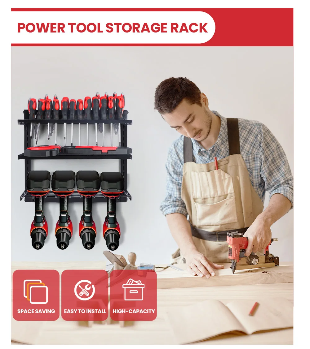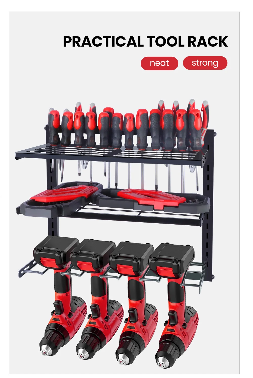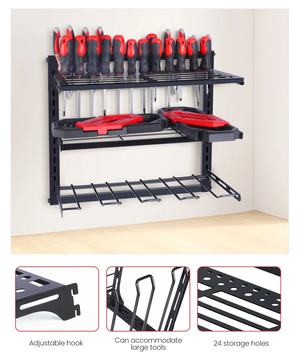 AIRAJ Wall Mounted Power Tool Organizer 3 Layer Heavy Duty Metal Storage Rack (250LB Load Capacity) Garage Specific Tool Storag