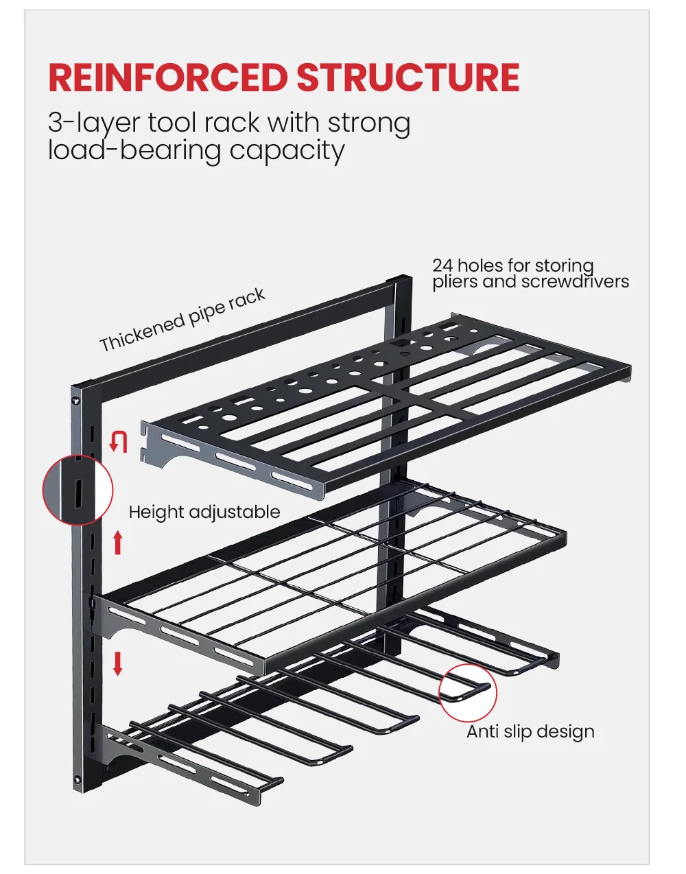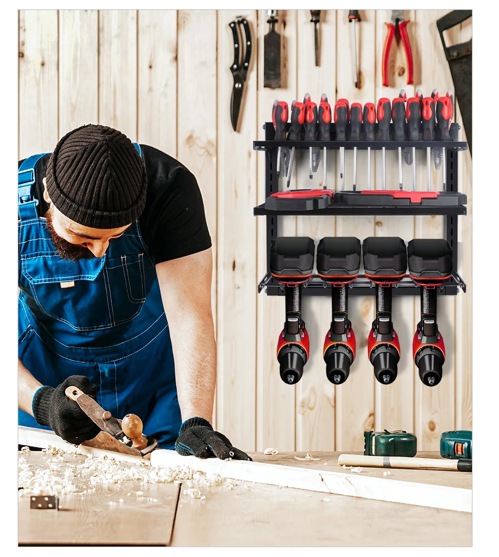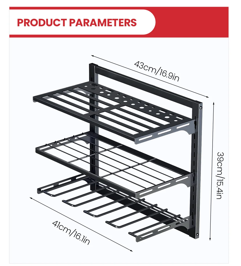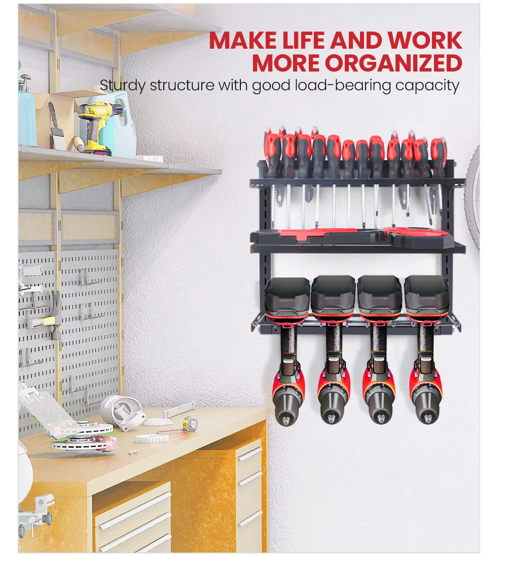 AIRAJ Wall Mounted Power Tool Organizer 3 Layer Heavy Duty Metal Storage Rack (250LB Load Capacity) Garage Specific Tool Storag