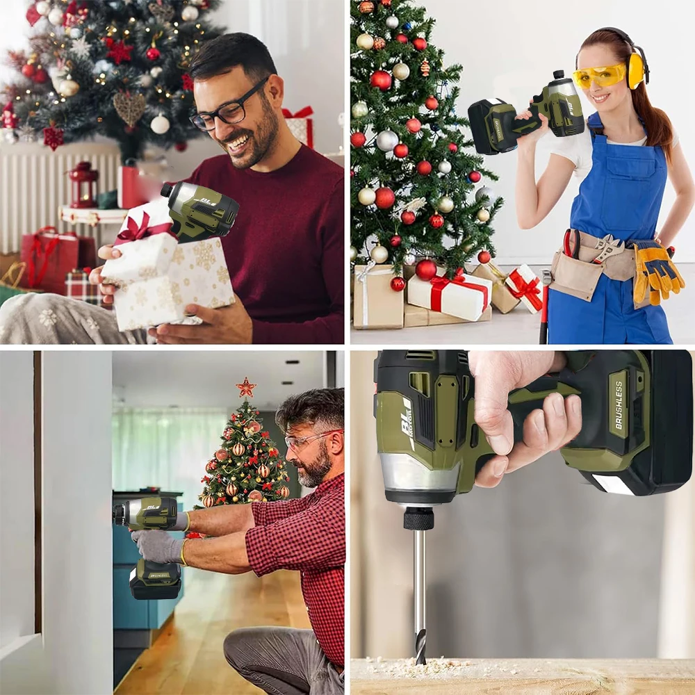 Powerful motor: The battery cordless drill screwdriver set uses a high-quality pure copper brushless motor to provide stronger and quieter power.Easily meet the various needs of wood, metal and plastic drilling screws, suitable for home DIY and professional workers.