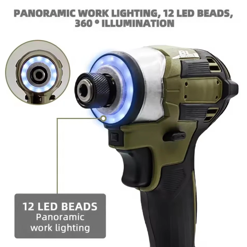 Multifunctional impact wrench: It can also be used as an impact driller and screwdriver. The built-in LED makes it easier for you to work in the dark, say goodbye to the trouble of switching tools in the middle of the task, and embrace unprecedented uninterrupted workflow efficiency.