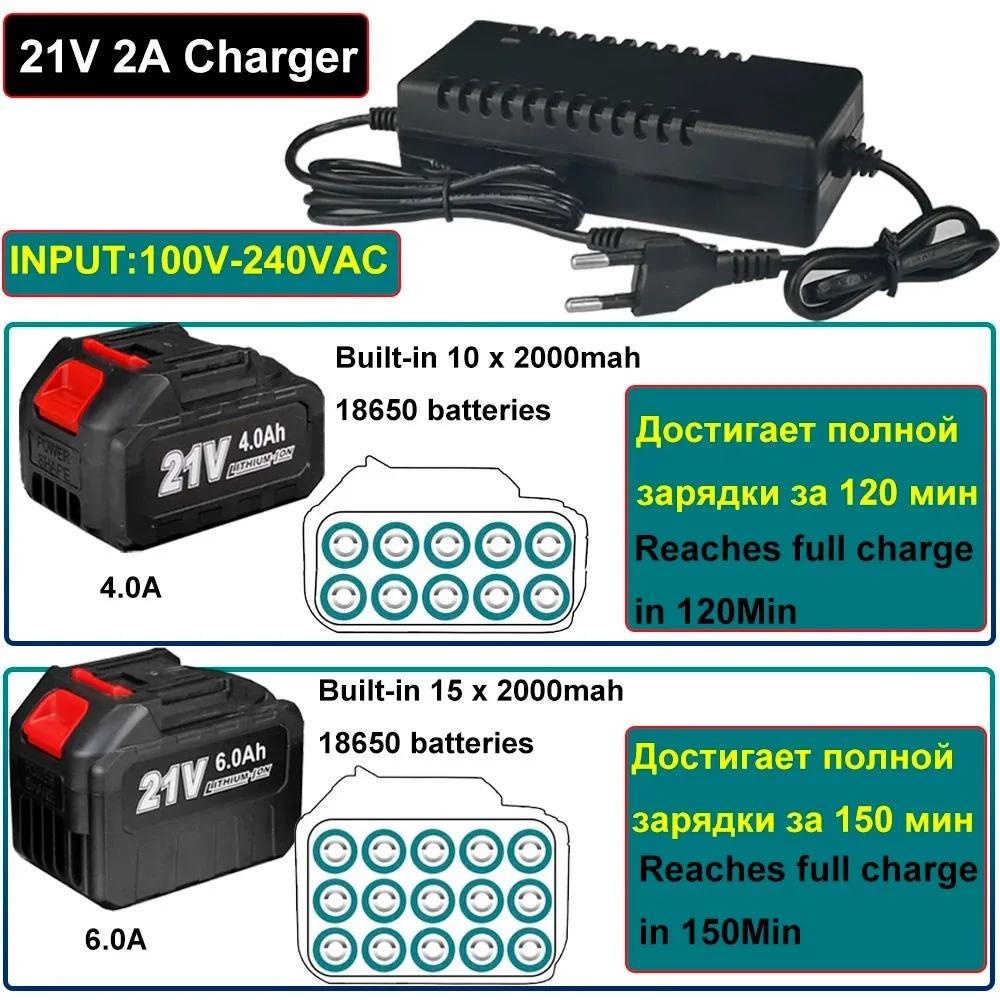 Battery Voltage: 21V 6000mAh (Included 15pcs 2000mah 18650)