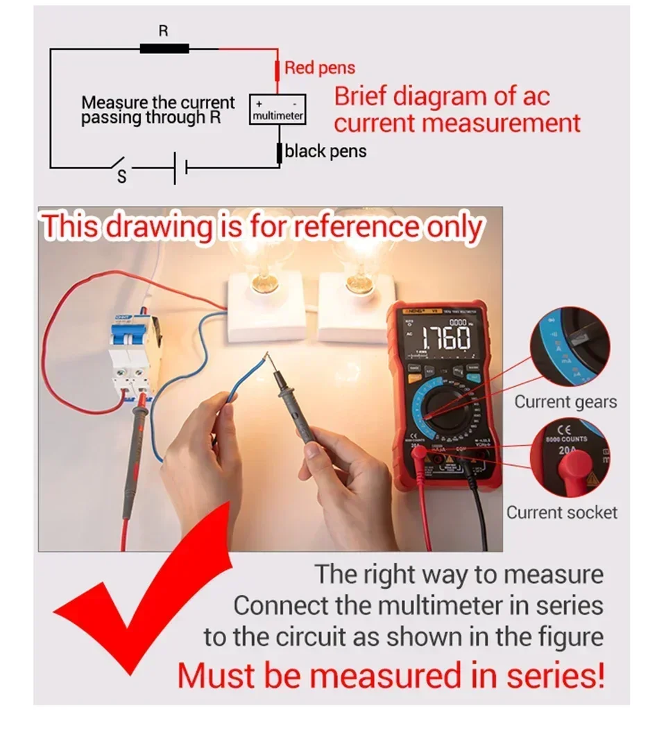 5. Do not input voltage exceeds 36V DC or 25V AC when you are at the setting of measuring current.