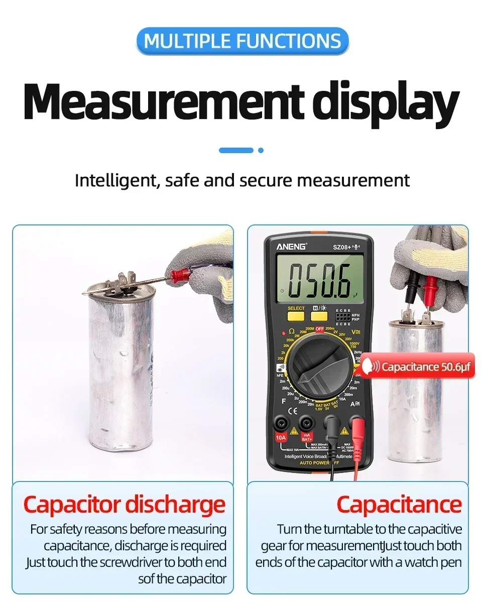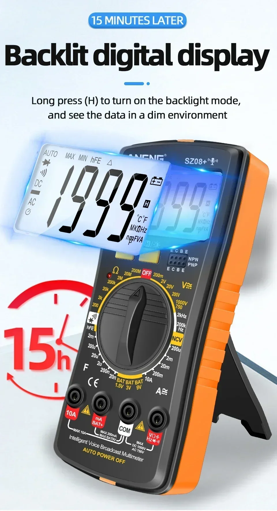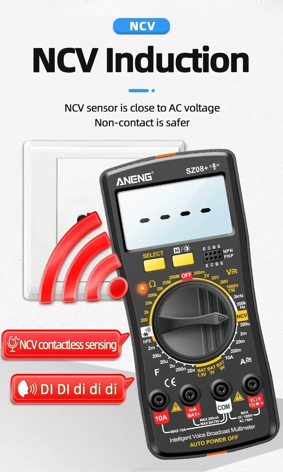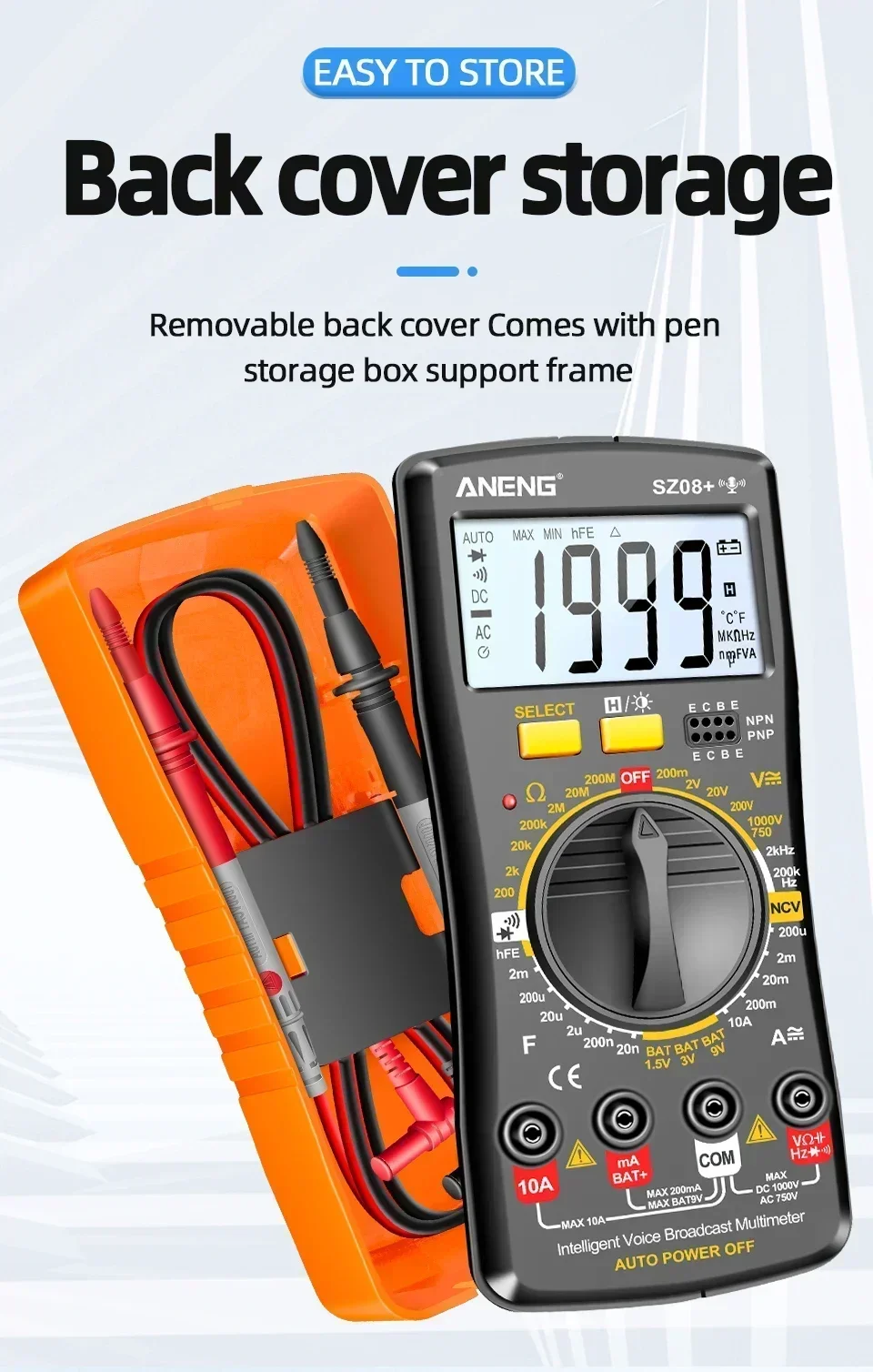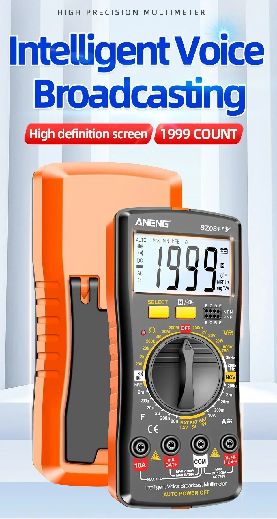 ANENG SZ08+ Intelligent Multimeter Voice Broadcast Testing AC/DC Ammeter Hz hEF Capacitance Meter Professional Electrician Tools