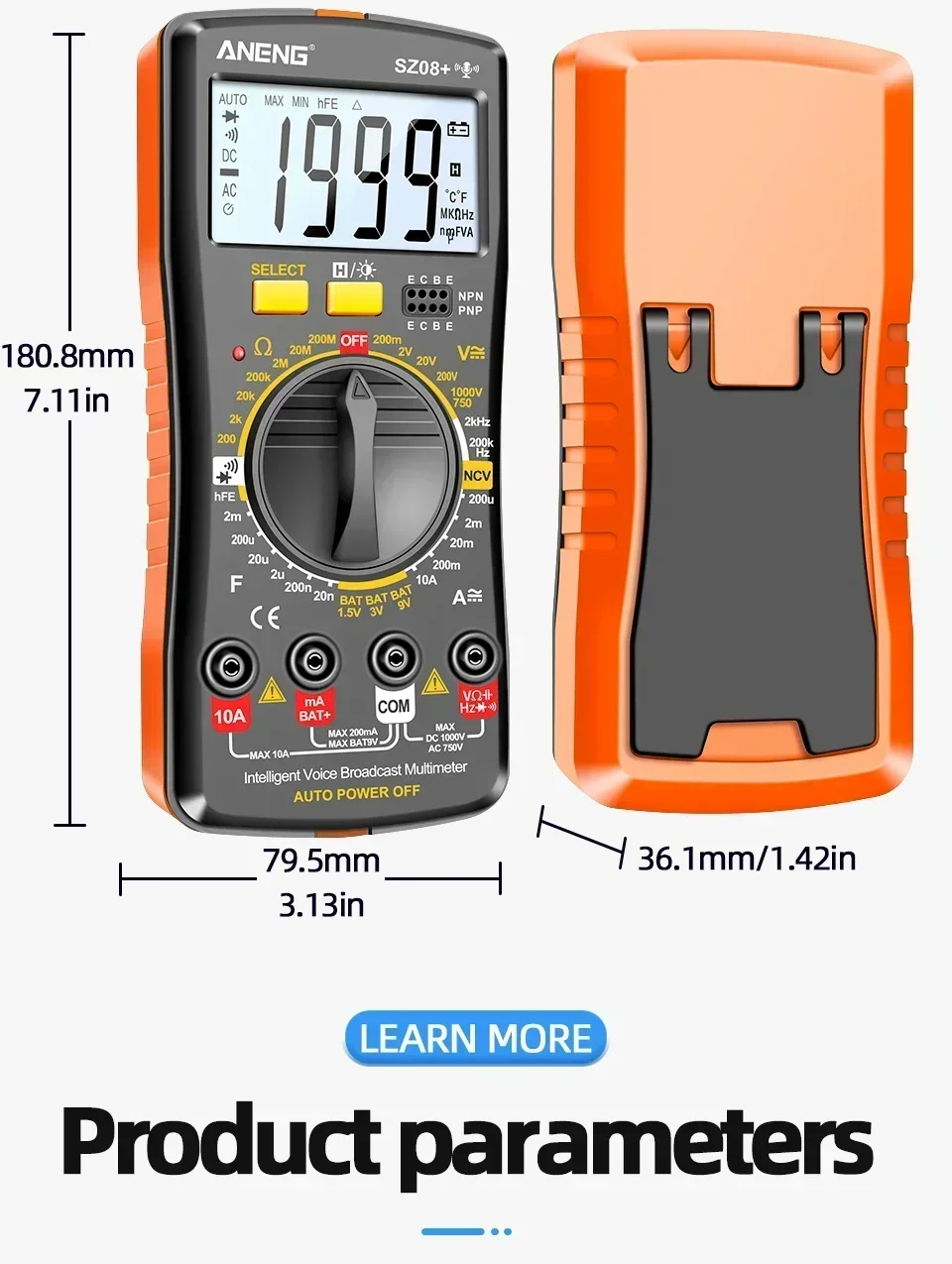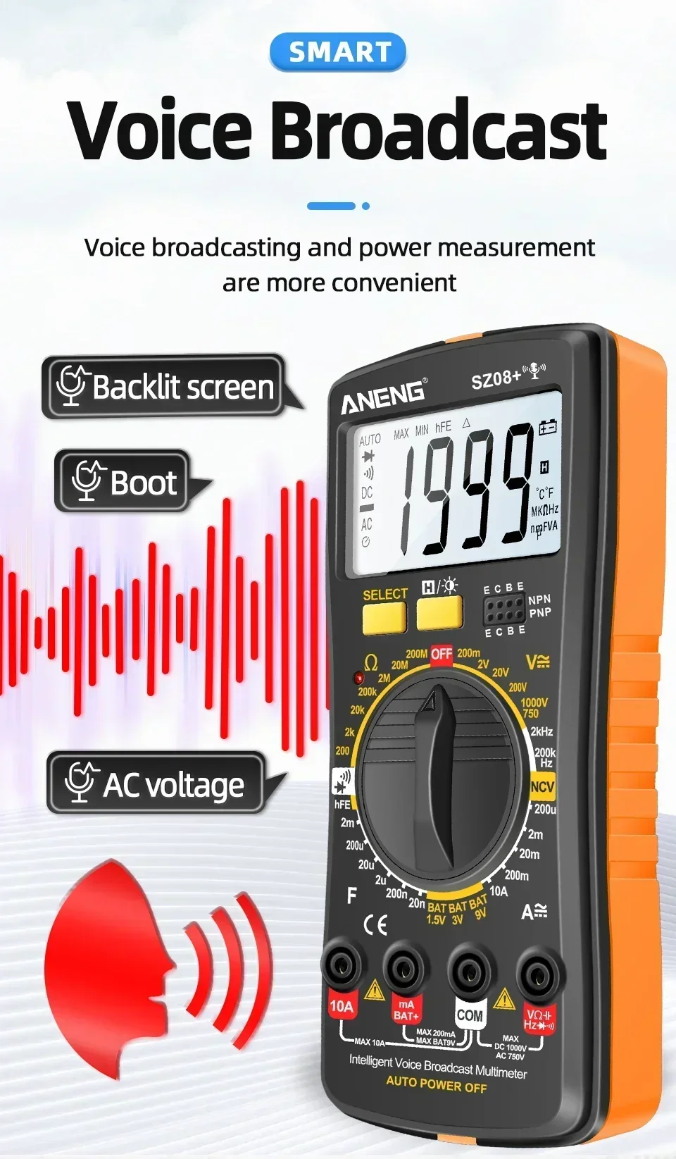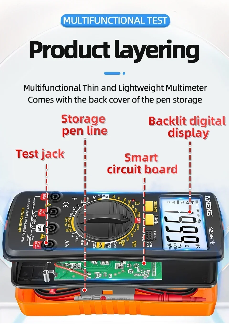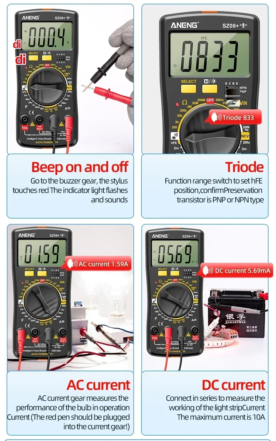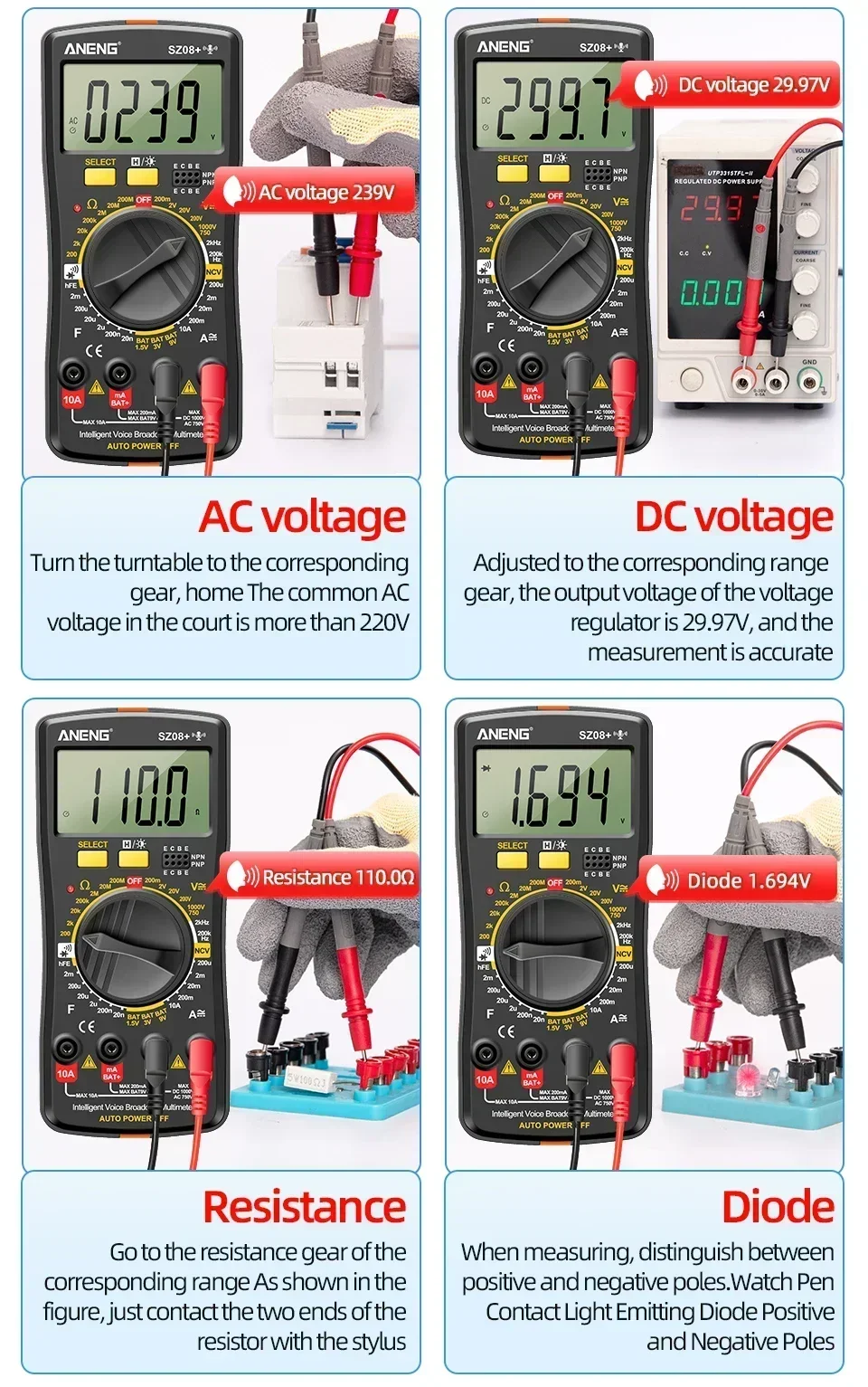 ANENG SZ08+ Intelligent Multimeter Voice Broadcast Testing AC/DC Ammeter Hz hEF Capacitance Meter Professional Electrician Tools